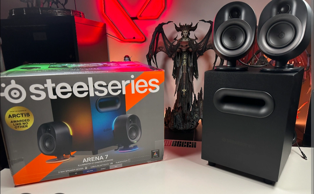 10Upgrade your setup with the SteelSeries Arena 7, a premium 2.1 gaming speaker system that delivers immersive, high-fidelity sound and dynamic RGB lighting. โ Condition: Barely used โ Like New (no scratches, fully functional, original packaging and cables included) โ Features: Powerful 2.1 setup with deep, rich bass from the subwoofer Reactive RGB lighting that syncs with your games and music Multiple connectivity options: USB, Optical, Bluetooth, and Aux Designed for PC, PlayStation, and more Crisp highs, detailed mids, and room-filling sound ๐ฎ Perfect for gamers, music lovers, or anyone who wants their desk to sound as good as it looks.
