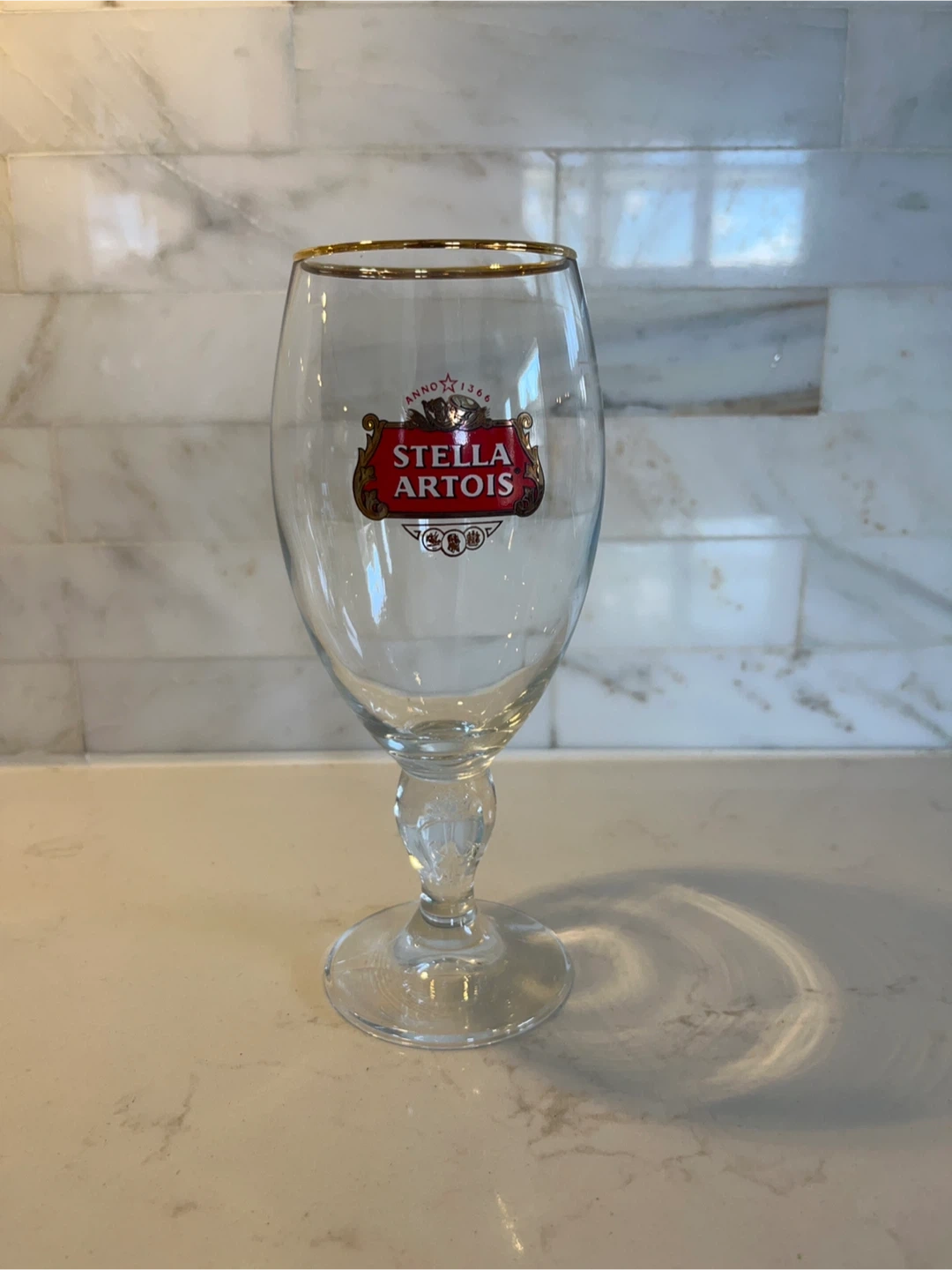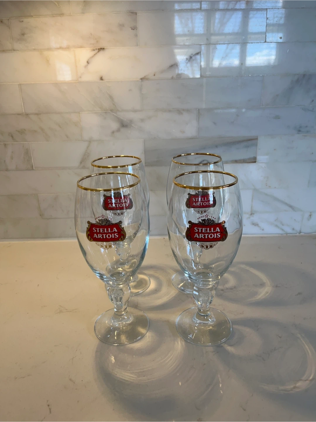 21Selling a set of four Stella Artois chalice glasses. These are perfect for enjoying your favourite brew in style! The glasses are in great condition and feature the classic Stella Artois logo with a gold rim. Add a touch of elegance to your next gathering or simply elevate your personal drinking experience