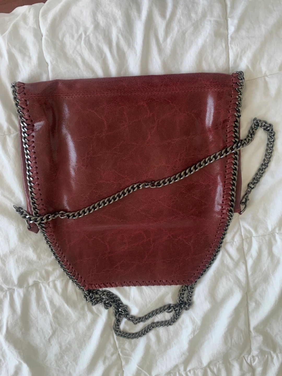 Selling a Stella McCartney Falabella fold over tote in a lovely burgundy colour. This stylish bag features the signature chain trim. It's in great condition and ready for a new home!