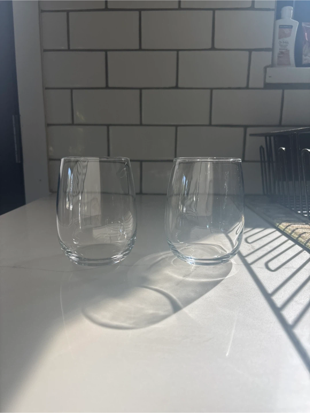 Selling a set of two stemless wine glasses. They're in great condition and ready for your favourite beverage