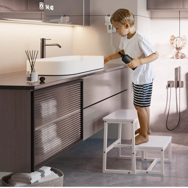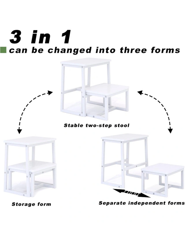 I am offering a brand new in box, white 3-in-1 step stool perfect for both adults and kids. This versatile step stool can be configured in three different ways to suit your needs, whether you need a stable two-step stool, separate independent forms, or a storage form. It's sturdy, safe, and ready to help you reach new heights! * 3-in-1 design: Converts into two-step stool, separate stools, or a storage form. * Sturdy construction: Can hold up to 500 lbs (226.8 kg). * Anti-skid pads: Protect floors and prevent sliding. * Safe rounded corners: Prevents bumps and bruises. This clever little helper is ready to leap into action! If the ad is up, it's available! More than one available Pick up location east Toronto