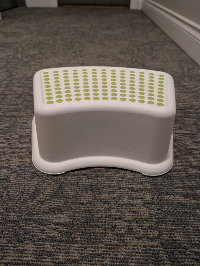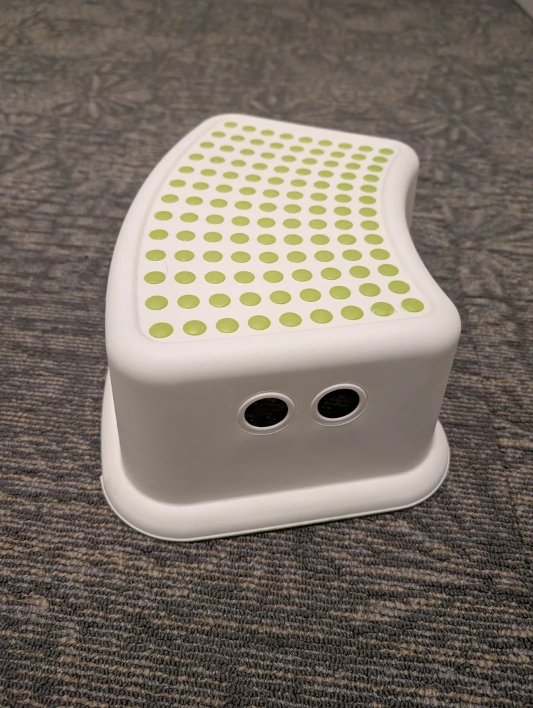 60Selling a step stool in white and green! It's in great condition and perfect for helping little ones reach the sink or toilet. It's sturdy and has a non-slip surface for added safety