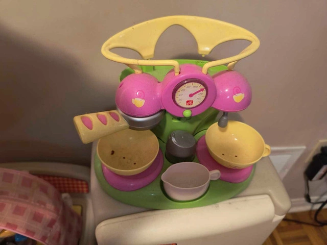 This is a used Step2 Kitchen Playset, complete with a variety of play food items and accessories for imaginative fun. The set includes a stove, refrigerator, coffee maker, and a collection of play food, dishes, and utensils. It is in good condition, ready to provide hours of entertainment for your little chef. This play kitchen is perfect for kids who love to mimic cooking and kitchen activities. It encourages creativity and role-playing. If the ad is still up, it's available!