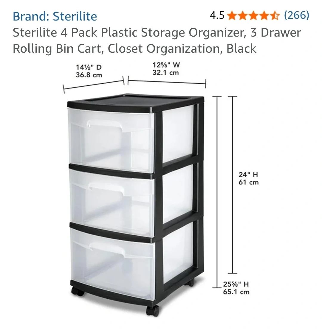 Show allSterilite 3-Drawer Rolling Storage Cart - Black