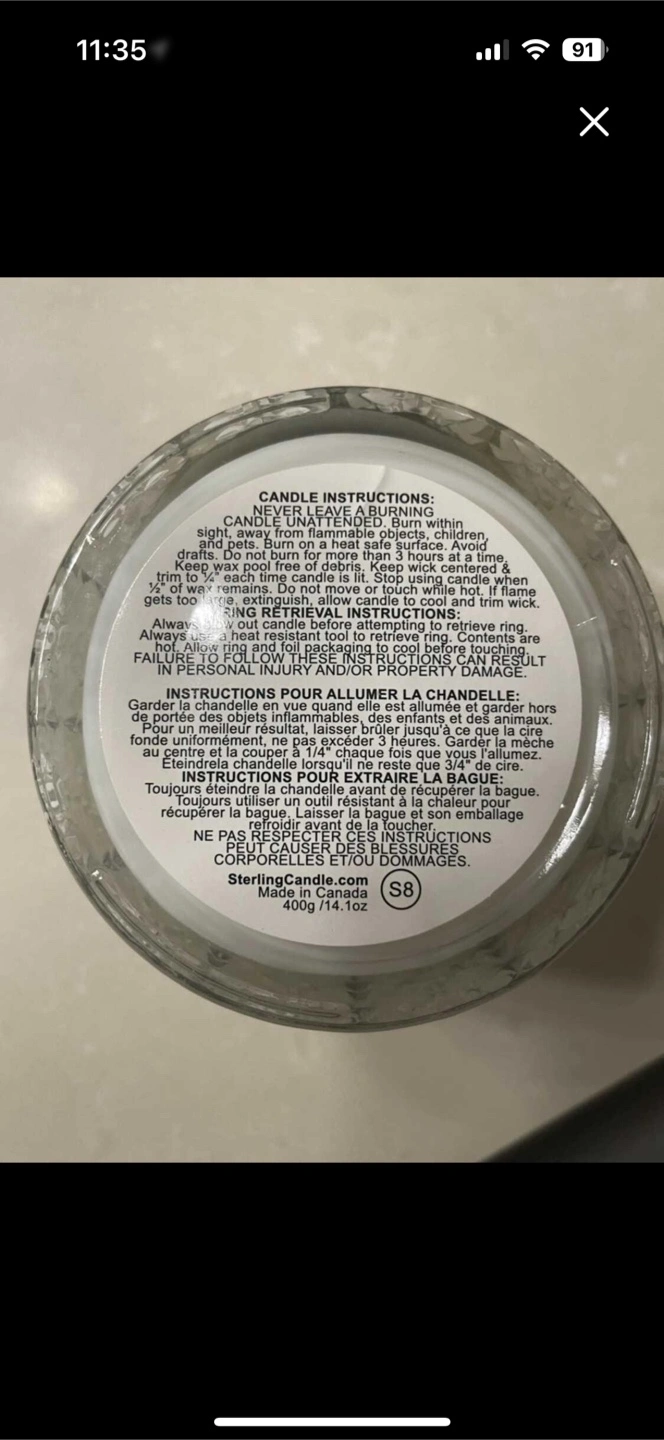 Selling a Sterling Candle in the Vanilla Macaron scent. It's a premium pure soy blend candle. Size 9 sterling silver ring inside