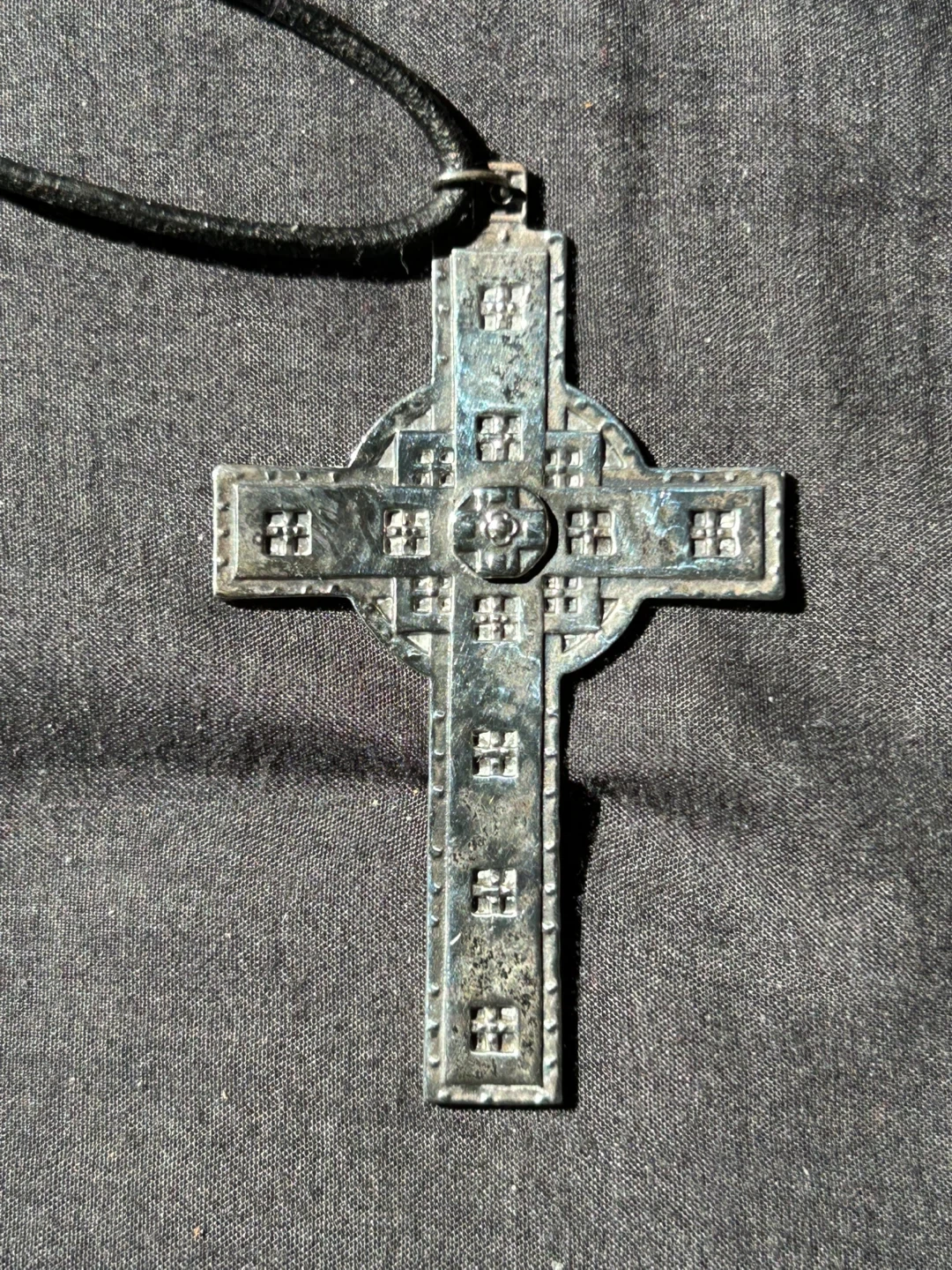 Sterling Silver Celtic cross 925 stamped large size pendant necklace Roman Catholic Protestant Anglican Or just general Christian Very beautiful and ornate Celtic cross with wonderful stamped details and pattern If you like Celtic design or bold jewellery or if you're religious this is the piece for you Stamped 925 for Sterling silver 2 1/2 inch x 1 6/10 inches See photos beside loonie On leather Chord Weight: quite heavy and maybe around 10 grams 60.00 for this amazing piece of jewellery Flexible re pickup Elmsdale Road M4J 3M3 Donlands O'Connor East York Don Mills south exit off DVP