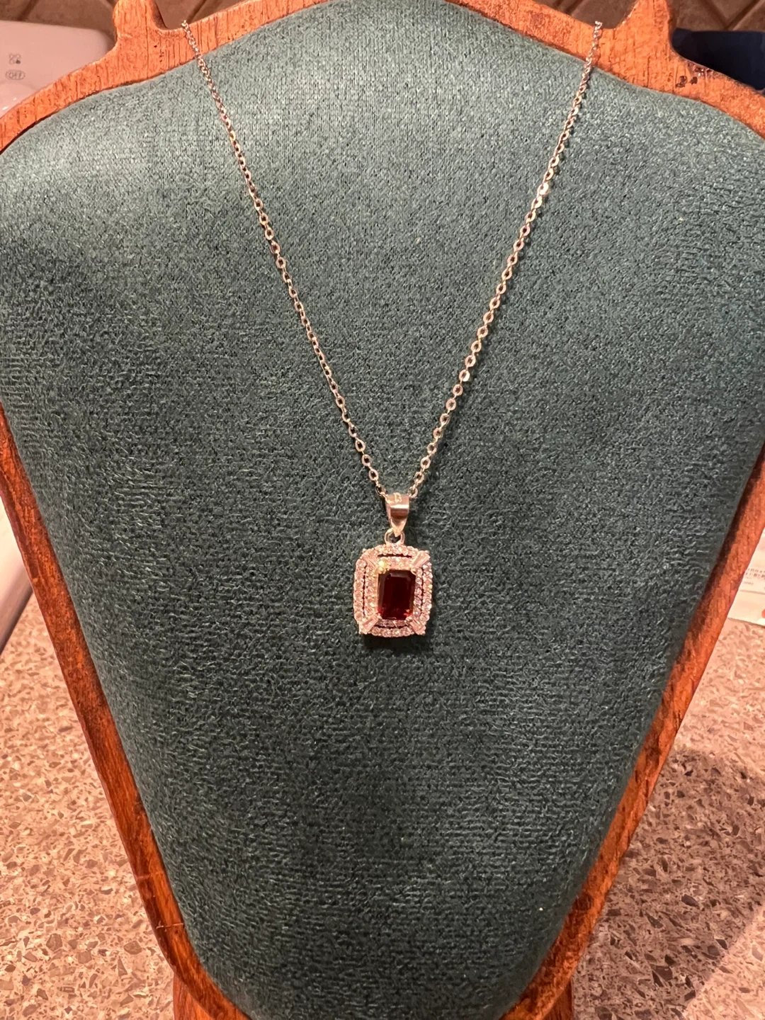 Here's a lovely necklace featuring a red stone pendant. It's in great condition and ready to add a touch of elegance to your style!