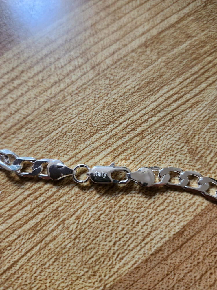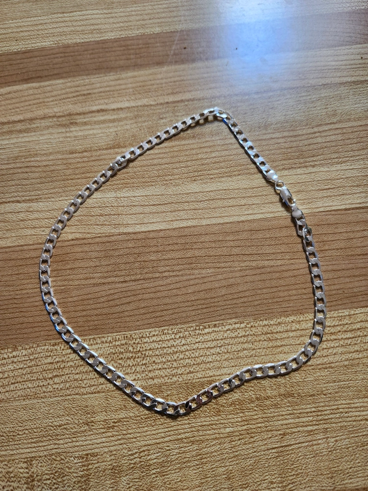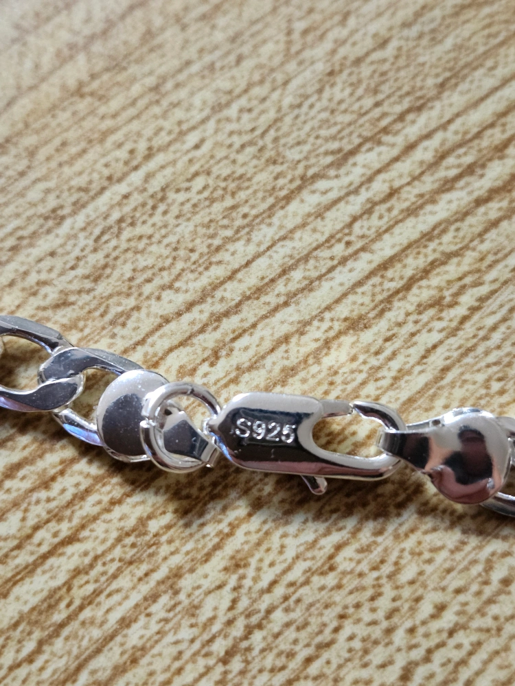 Selling a Sterling silver chain necklace marked with S925, indicating its silver purity. It's a classic figaro style, perfect for everyday wear. 20 inches