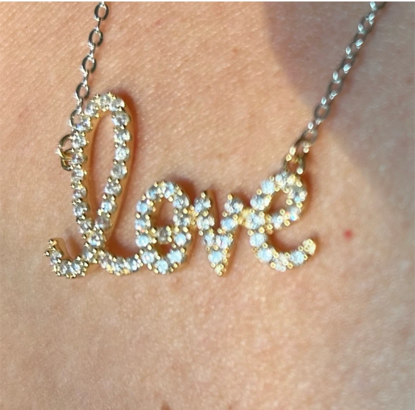 BRAND NEW/UNWORN. The word LOVE is a really hard to find larger size, it’s not tiny!!! The stones are CZ/cubic zirconia that are VERY BLINGY/GLITTERY and the chain is VERY BRIGHT SILVER, ULTRA SHINEY 925 sterling silver, and the pendant part is also made of sterling silver base metal but it plated and layered in 14k YELLOW GOLD plating. If you like mixing metals/colour, this is for you!! Its stunning!! Necklace measures 20” total length with pendant included, and fits more like an 18” when on as the pendant lays flat horizontally. May have very slight markings upon magnification just due to handling and storage. Don’t lowball. This piece wasn’t cheap given its rarity, I’ve already discounted it more than $100 over what I paid, and I won’t be just giving it away either. Reasonable offers will be considered of course. 😊