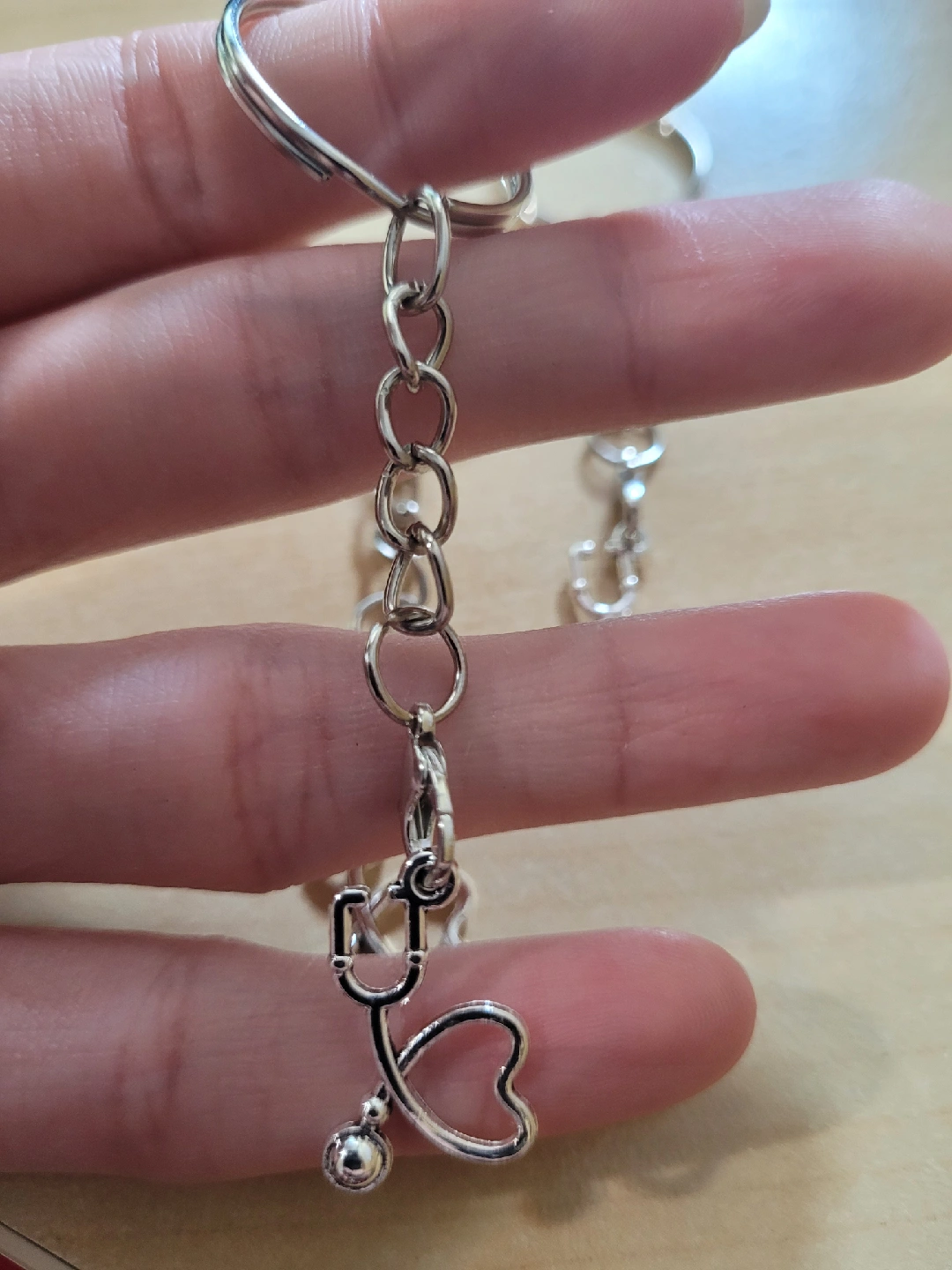 Selling a cute stethoscope charm keychain! It's in great condition and perfect for anyone in the medical field or just a fan of stethoscopes. The charm is a silver colour and has a lobster clasp.