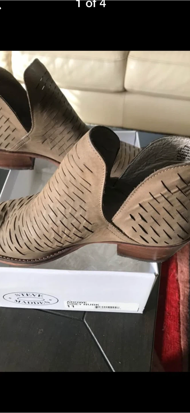 Selling Steve Madden booties in a lovely grey nubuck colour! These are a women's size 11. Originally bought for $129.95 $US, these stylish booties are ready for a new home.