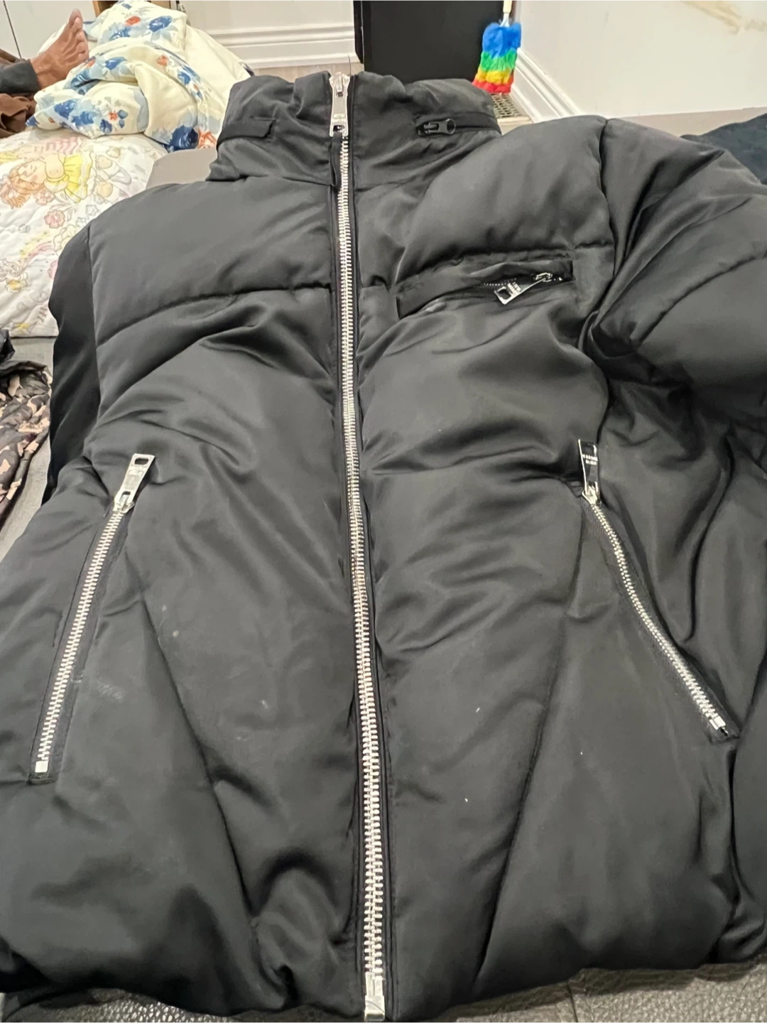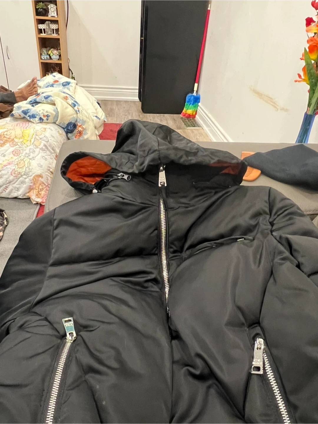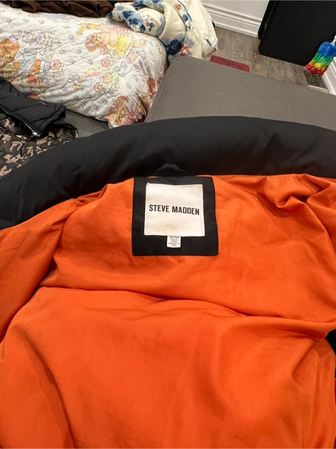 66Selling a Steve Madden puffer jacket in black. It's a size M/M and has a bright orange lining. Great for staying warm and stylish during the colder months!