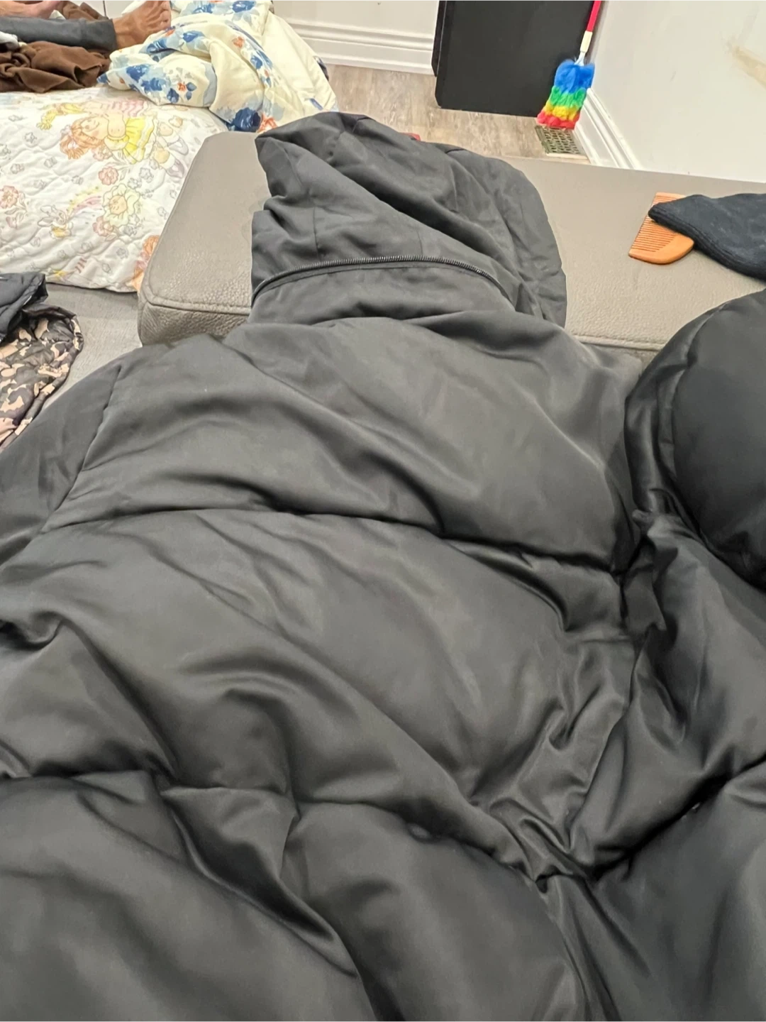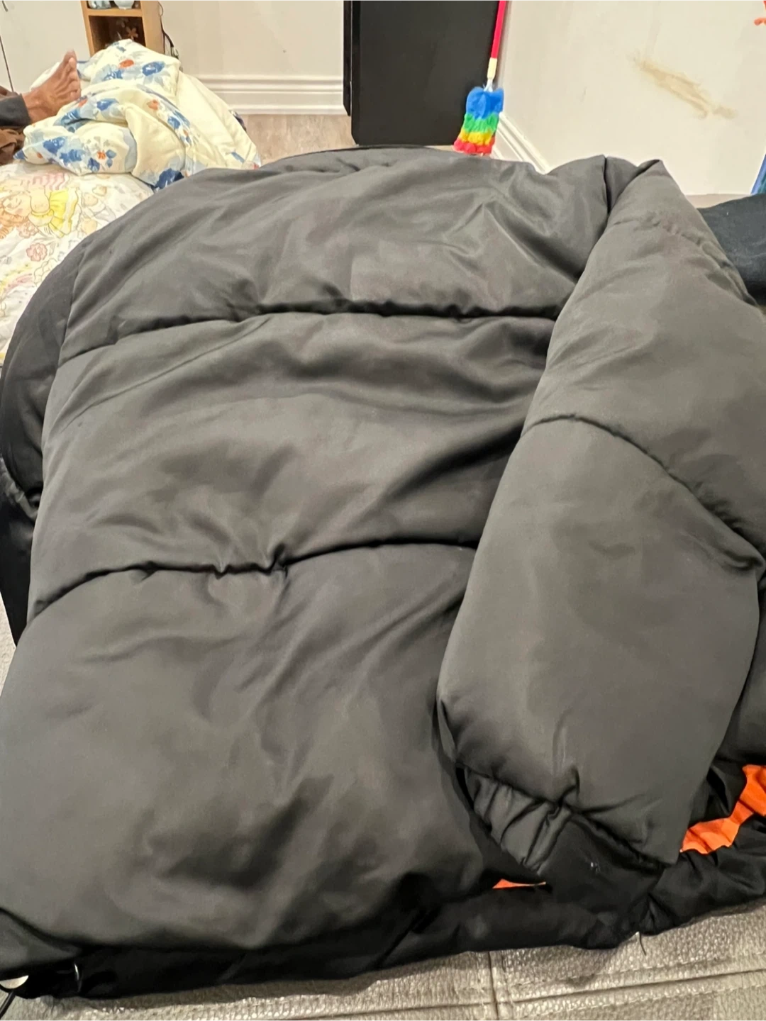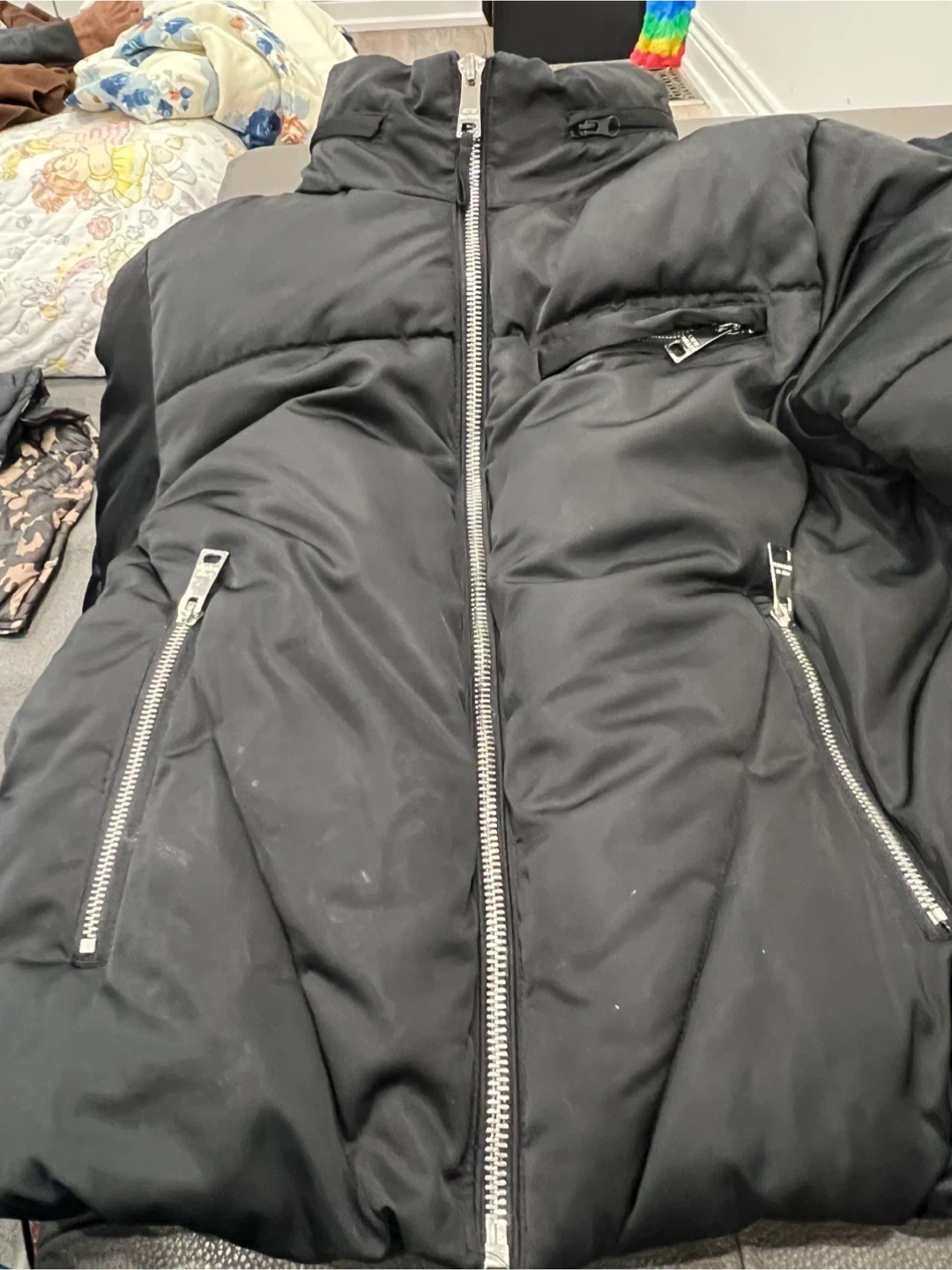 66Selling a Steve Madden puffer jacket in black. It's a size M/M and has a bright orange lining. Great for staying warm and stylish during the colder months!
