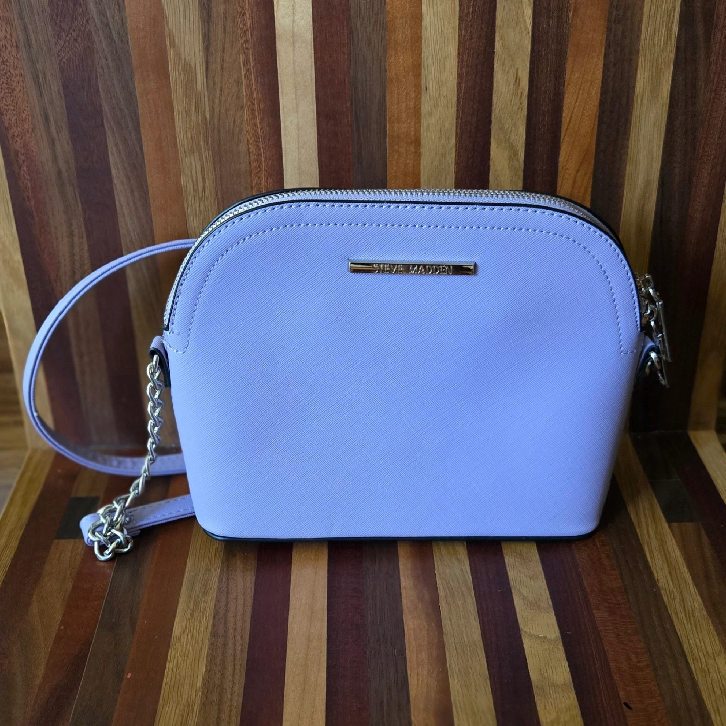 Selling a cute Steve Madden crossbody bag in a lovely lilac colour! It's in great condition, like new, and perfect for carrying your essentials. The silver chain adds a touch of style. A great addition to any outfit!