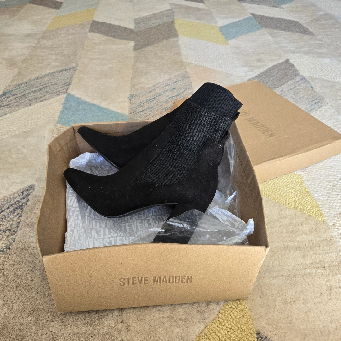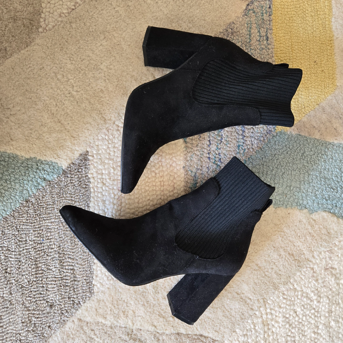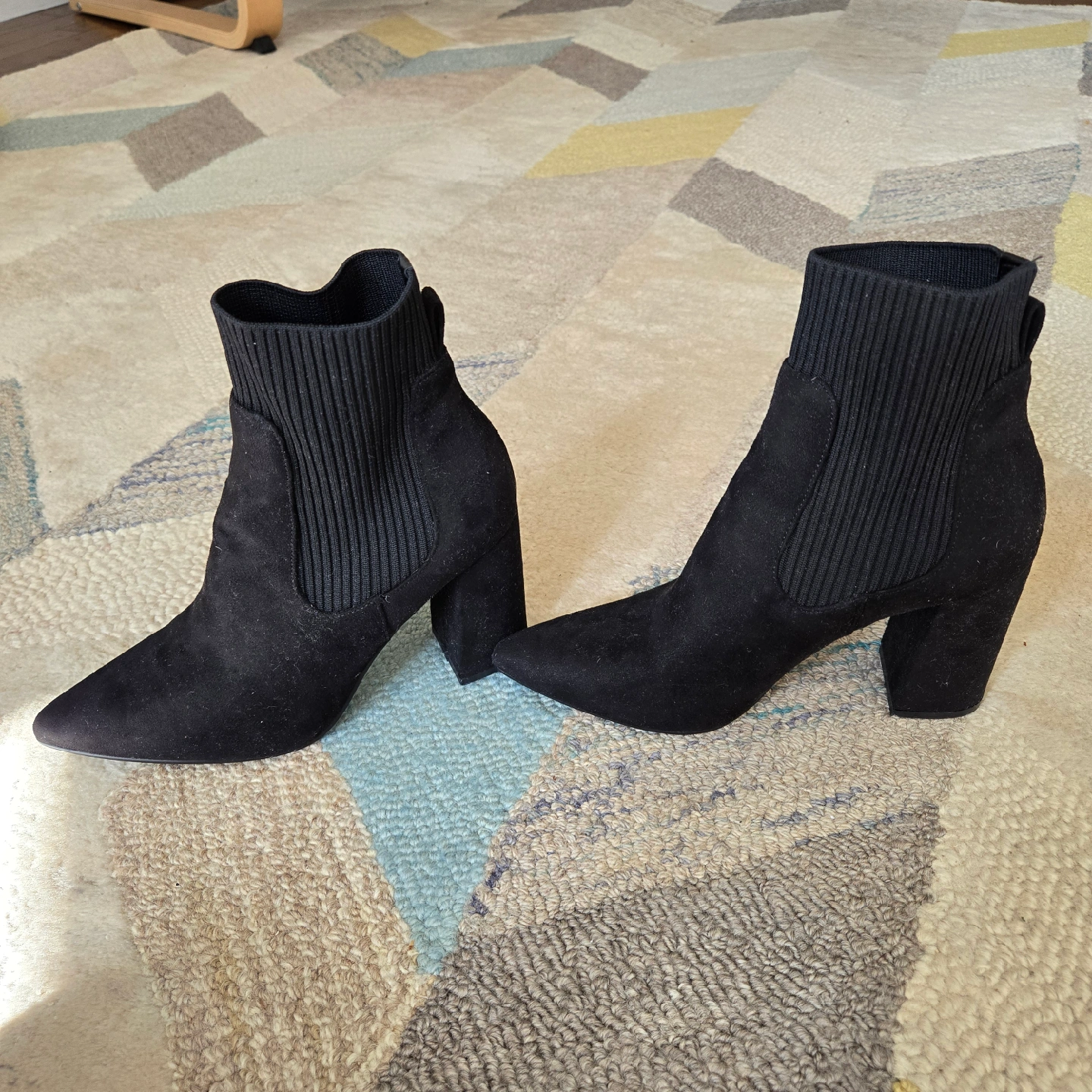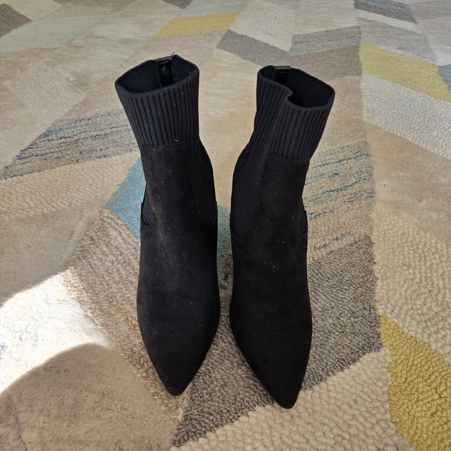 31Worn once inside. size 7 black suede. comfortable heels! Paid over $100 brand new.
