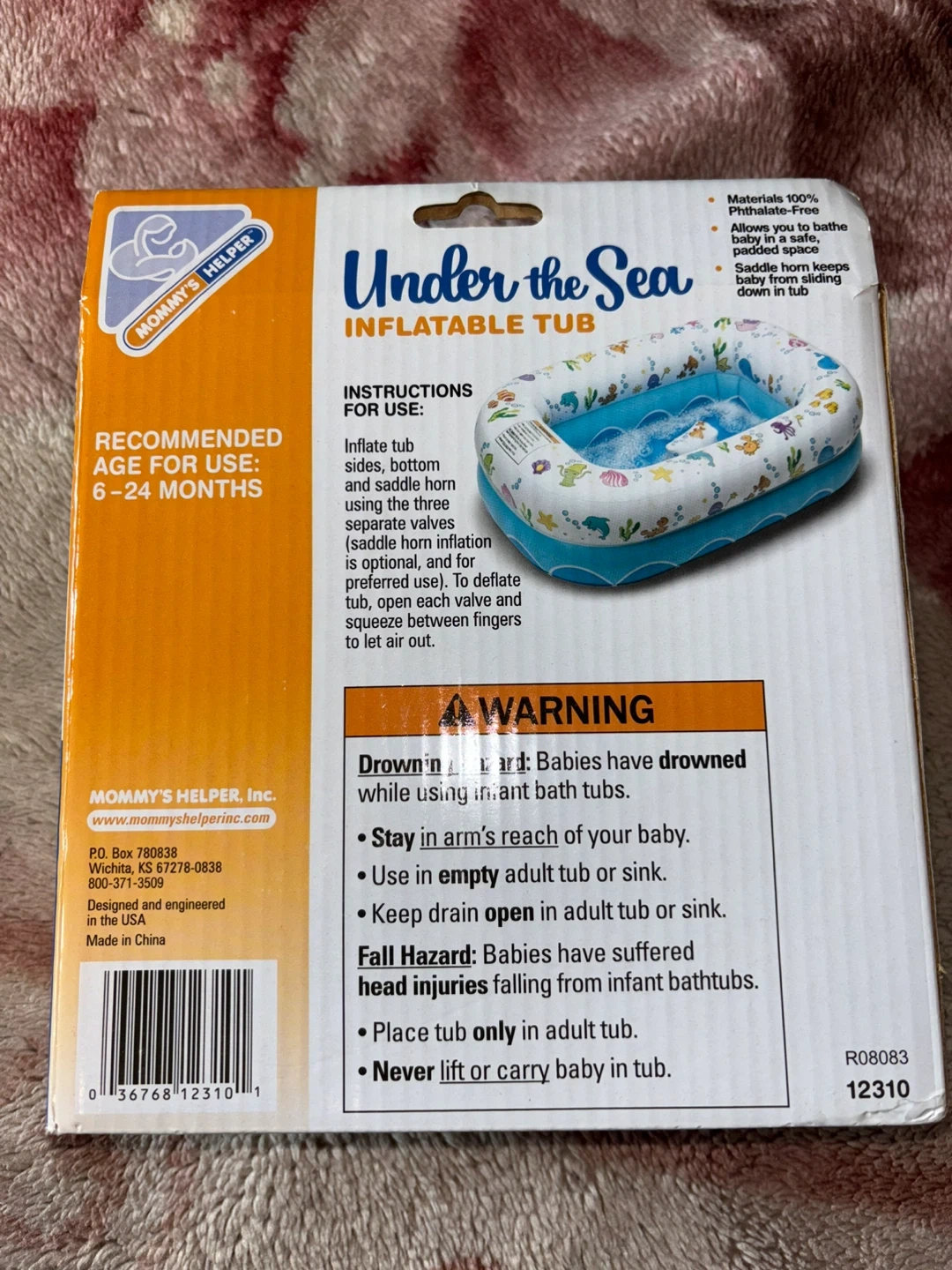 This is the Mommy's Helper Under the Sea inflatable tub. It's made from 100% phthalate-free materials and includes a saddle horn to help keep your baby from sliding down. Allows you to bathe baby in a safe, padded space. Gently used a few times.