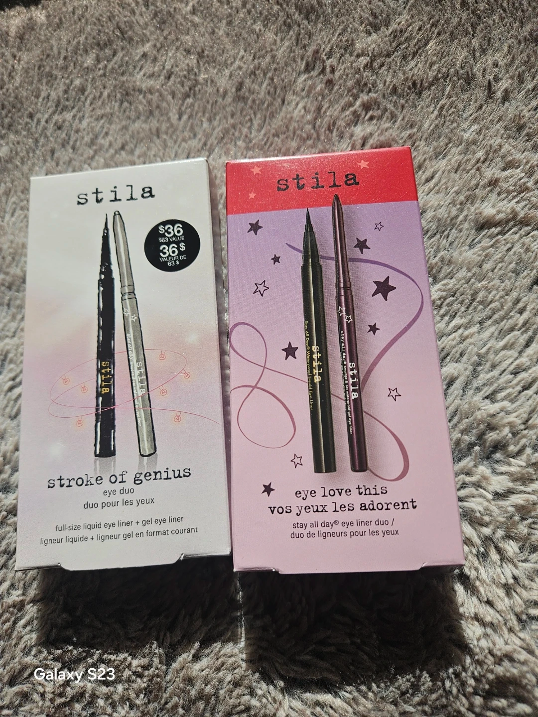 14Selling two brand new Stila eye liner duo sets! One is the 'Stroke of Genius' eye duo, which includes a full-size liquid eye liner and a gel eye liner. The other is the 'Eye Love This' duo, featuring Stay All Day eye liners. Each set is valued at $36!