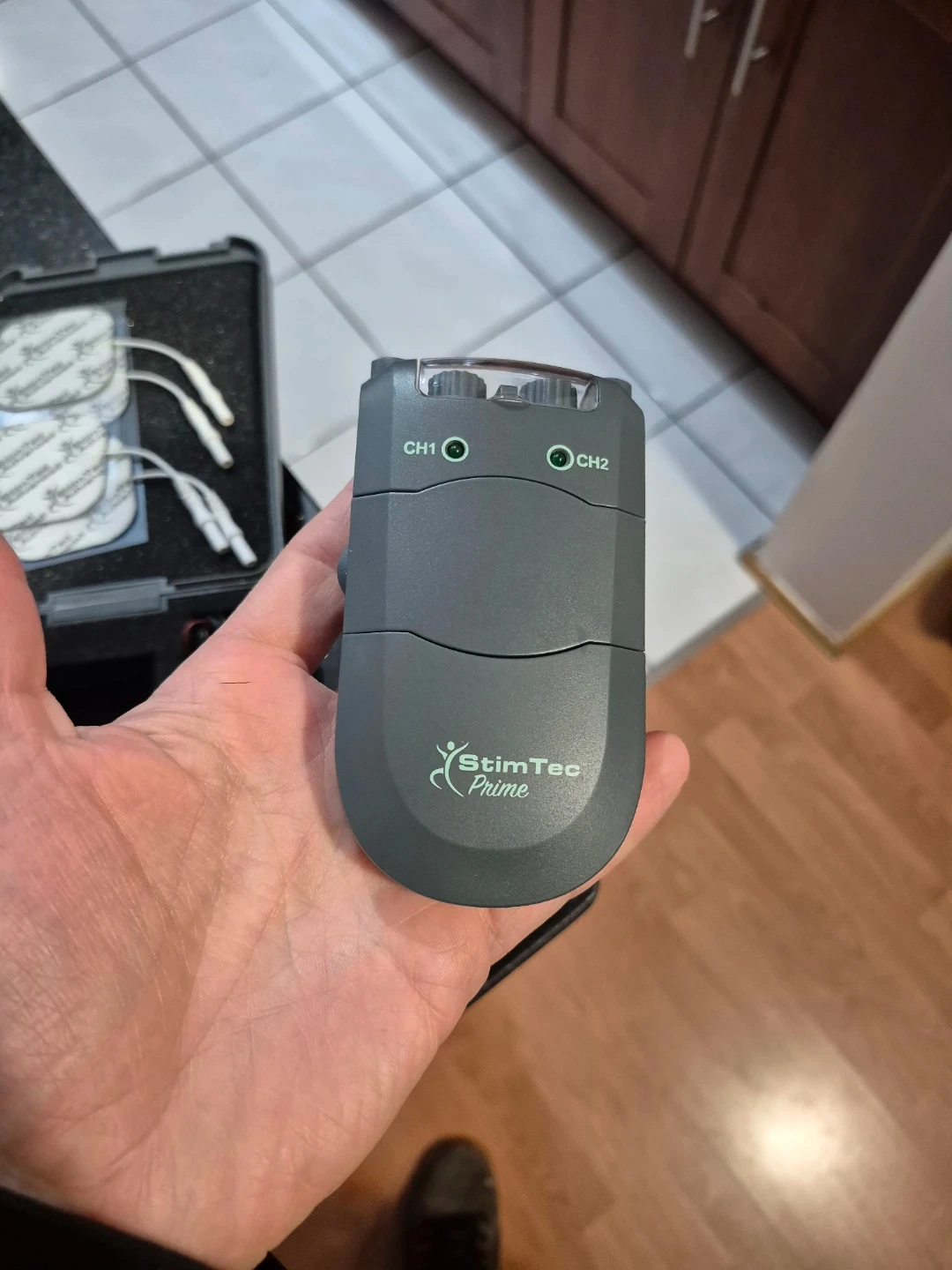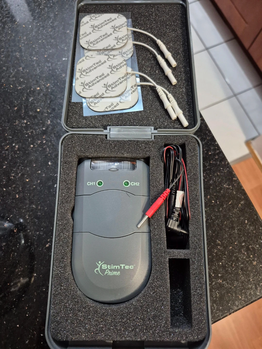 102Selling a StimTec Prime TENS unit. It comes with the carrying case and all the accessories you see in the pictures, including the electrode pads and cables. Great for pain relief and muscle stimulation!