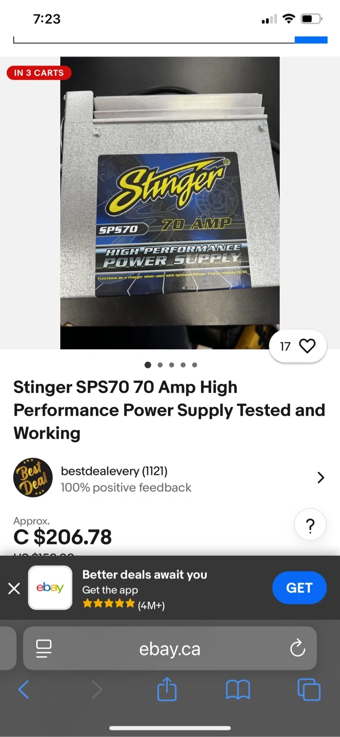 Selling a Stinger SPS70 70 Amp High Performance Power Supply. It's a high performance power supply that functions as a charger when used with optional Stinger Thermik Module (SCM). Input: 105-130 VAC, 60Hz, 1250 Watts Output: 13.6 VDC, 70 AMP