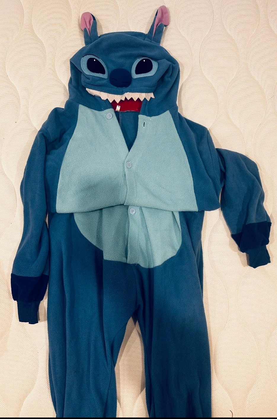 Used ones. Stitch Halloween Costume One Pc Adult Sz Medium + Hoodie Warm. Selling a cozy Stitch onesie! Super soft and perfect for lounging around the house or for a costume party. The hood is adorable and keeps you warm too.