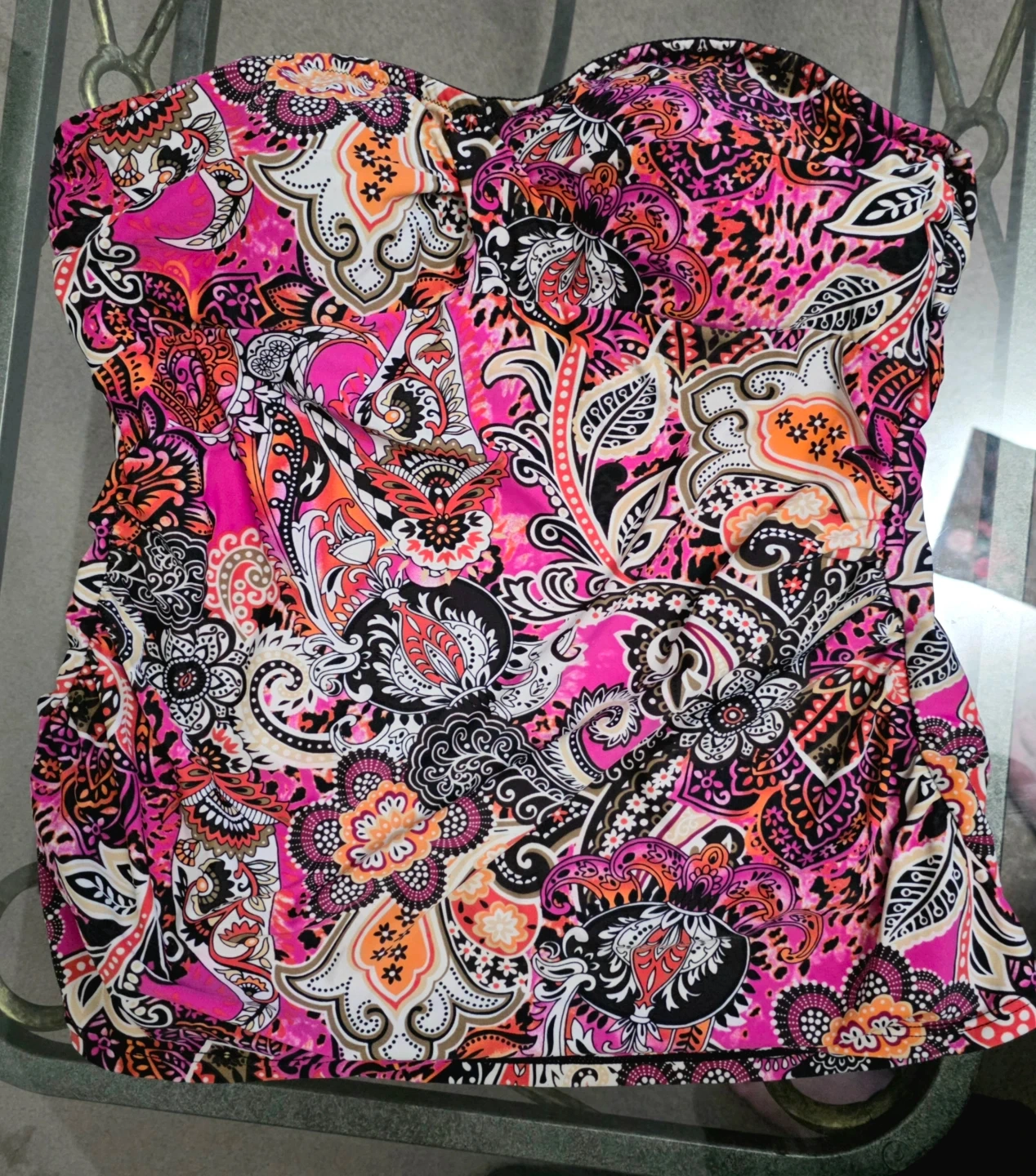 🌺 Vibrant Pink Paisley Bandeau Tankini Swim Top - Size 18