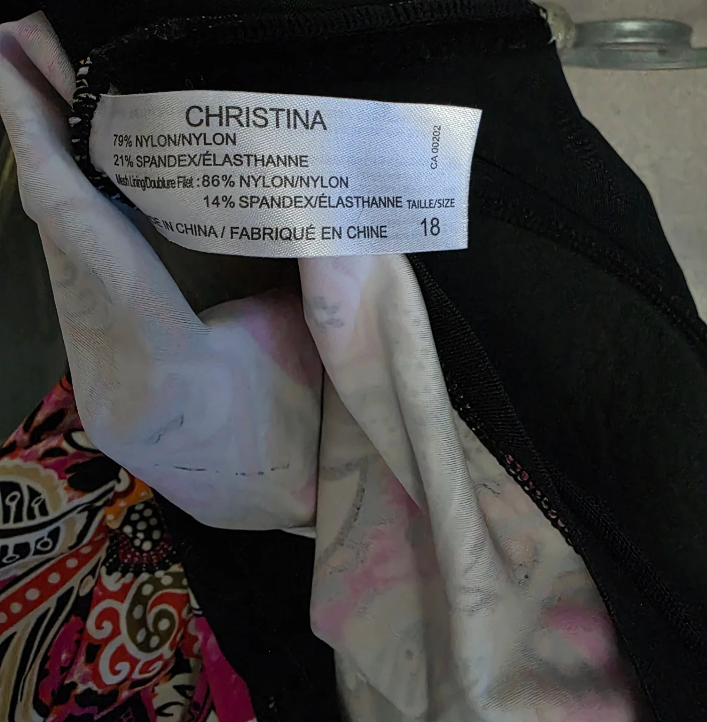 Beautiful, brightly colored "Christina" brand tankini swim top in a fun pink, orange, and black paisley/floral print.