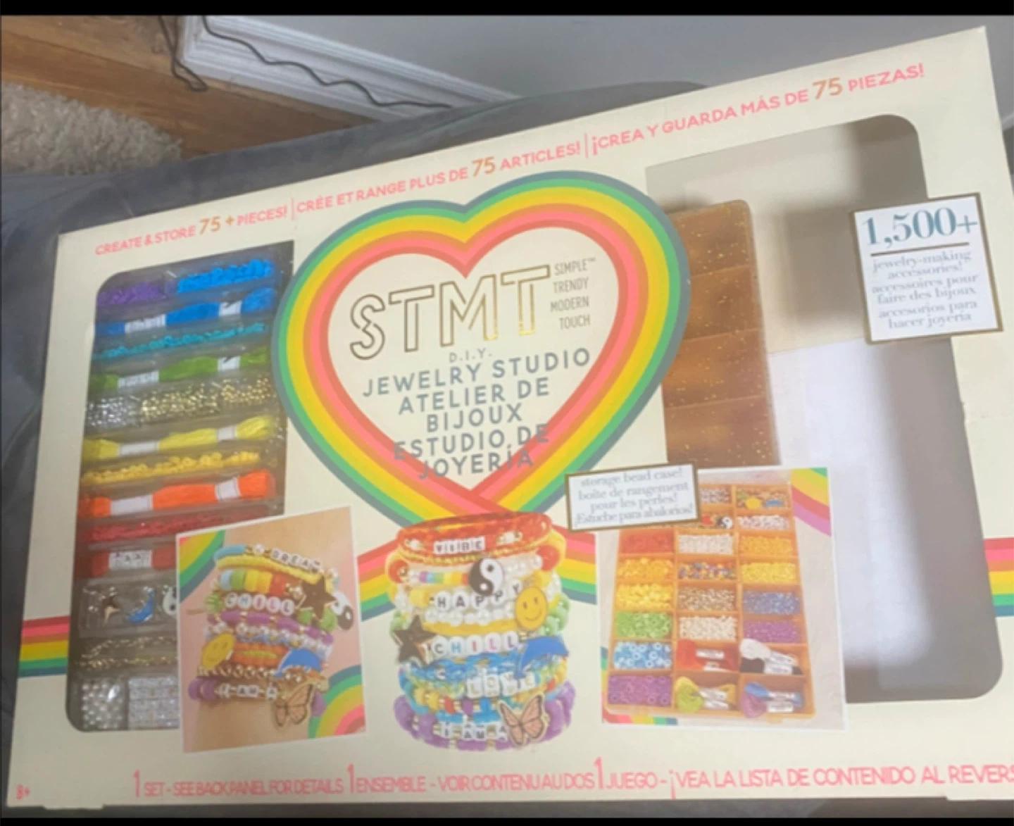 9This STMT D.I.Y. Jewelry Studio is perfect for unleashing creativity with over 75 pieces to create and store, ensuring a simple, trendy, and modern touch to your jewelry designs! This item is in new condition. Unleash your inner artist with this dazzling set! And remember, if the ad is up, it's still available!