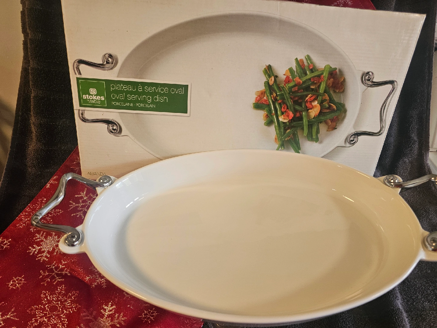 10Belle assiette ovale en porcelaine avec anses argentées de la marque STOKES, vintage avec anses argentées pour vos dîners spéciaux, premier arrive premier servi original boxe