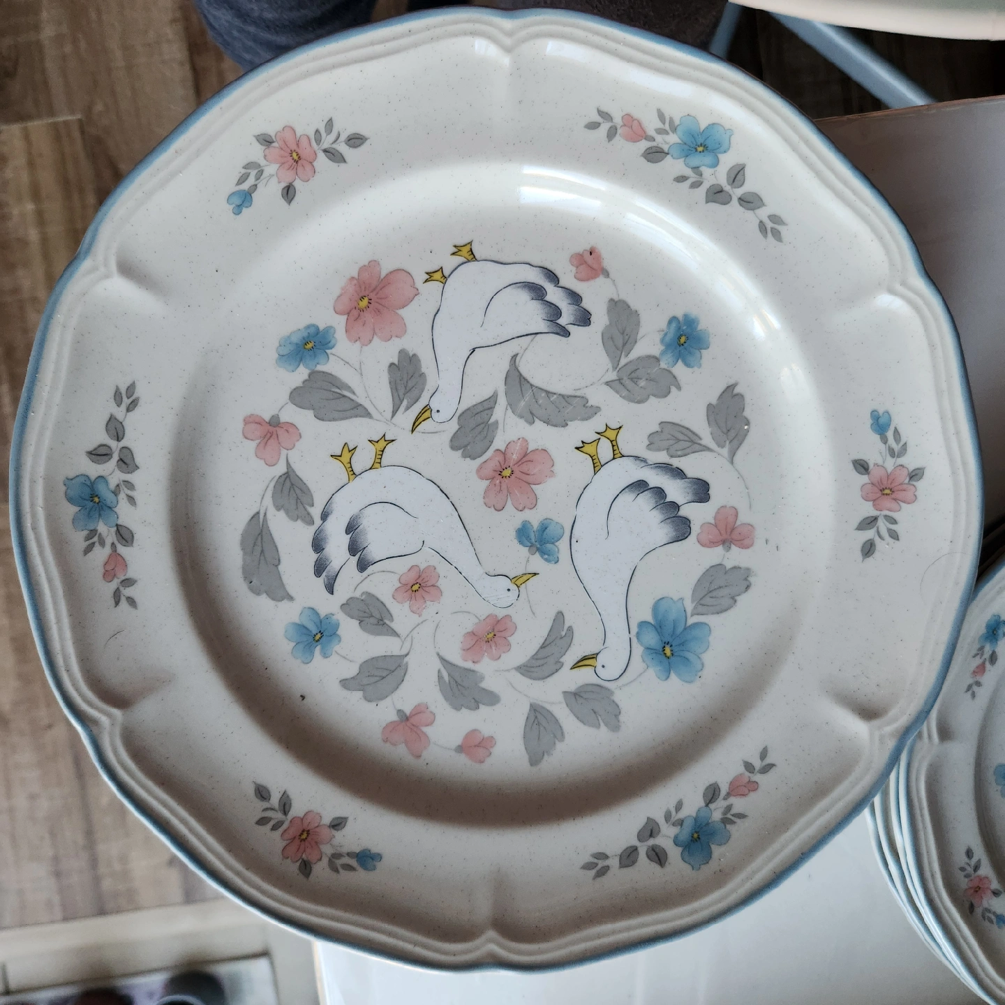Stoneware Japan Selling a set of vintage dinnerware with a charming country design! The set includes plates and bowls with a delicate floral pattern and blue trim. Perfect for adding a touch of nostalgia to your table setting 16pcs. all pick up or meet up only Please Cash Basis