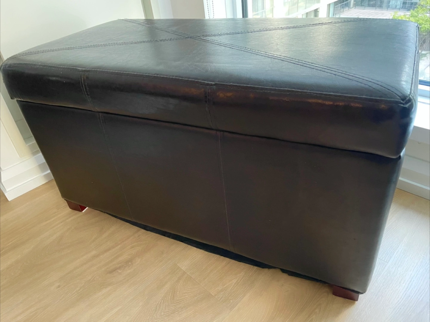Storage Bench / Ottoman, Chocolate Brown Faux Leather, Great Condition $25 firm 32” x 15.5” x 17.5” LxWxH Pick up downtown Toronto Bay/Dundas