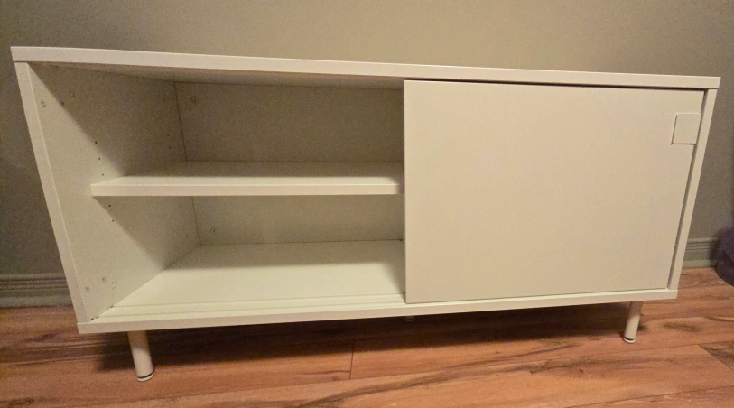 This storage bench with shelves and sliding doors is perfect for tight spaces, a hallway or corridor where regular doors can get in the way. Practical hidden storage for shoes, a sports bag or other things you need for the day. Sit down on the bench while you put on your shoes, or set schoolbags or bags of groceries down on top of it. The storage bench's depth of 35 cm allows you to fit shoes up to size 50. You can also adjust the height of the shelves to suit your needs. $90 OBO Cash or e-transfer only. Pick up in Newtonbrook W area.