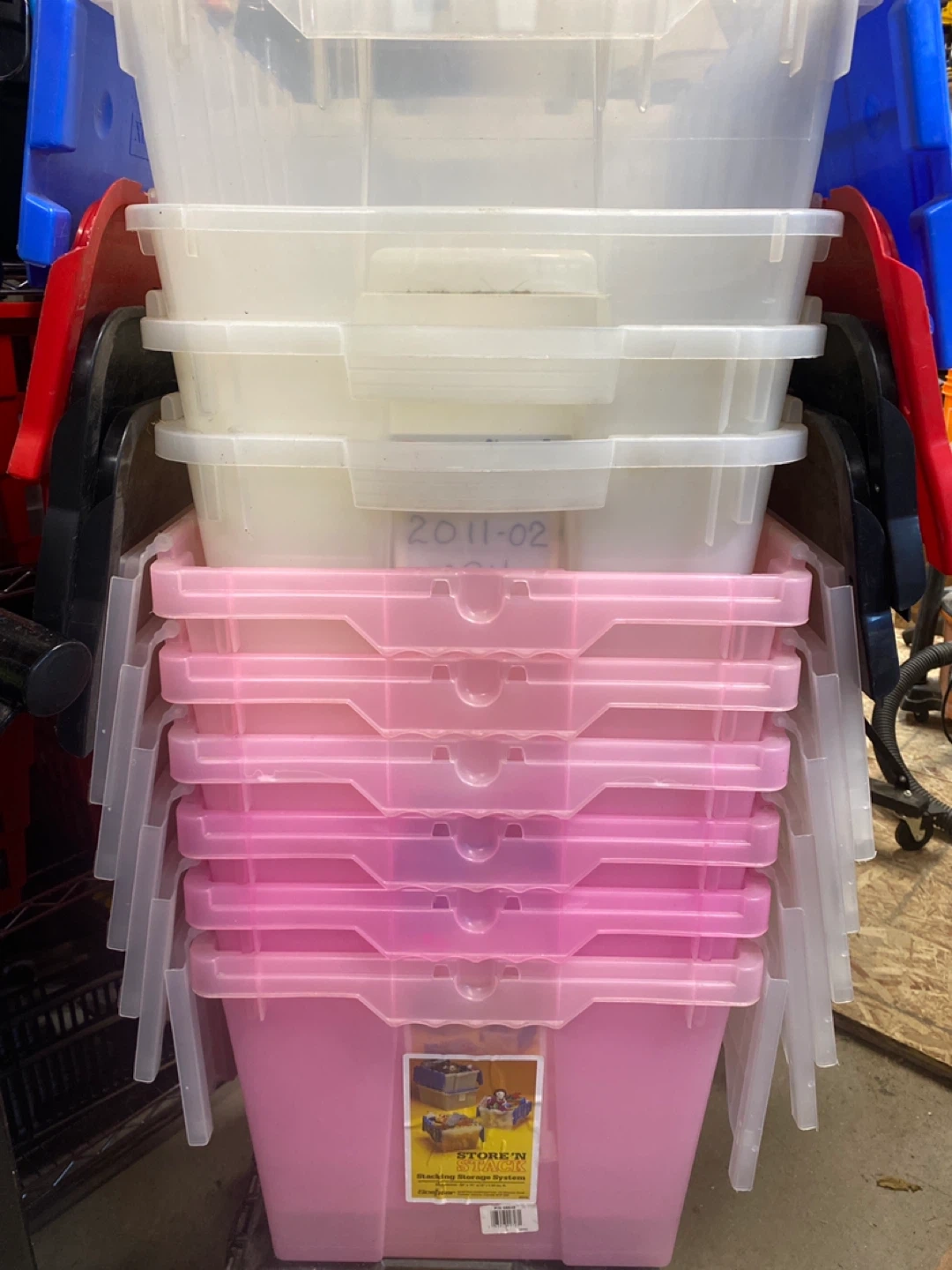 Lot of 10 Storage Bins, $40.00 for the lot. All have been used and are probably dusty from being in the garage. Pickup only, Kipling and Highway 7 area of Woodbridge.
