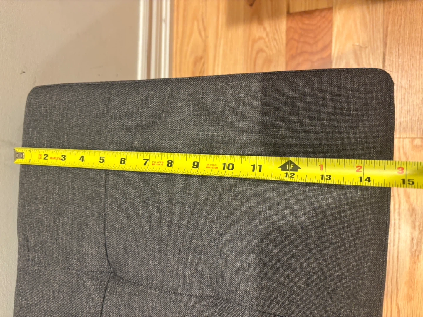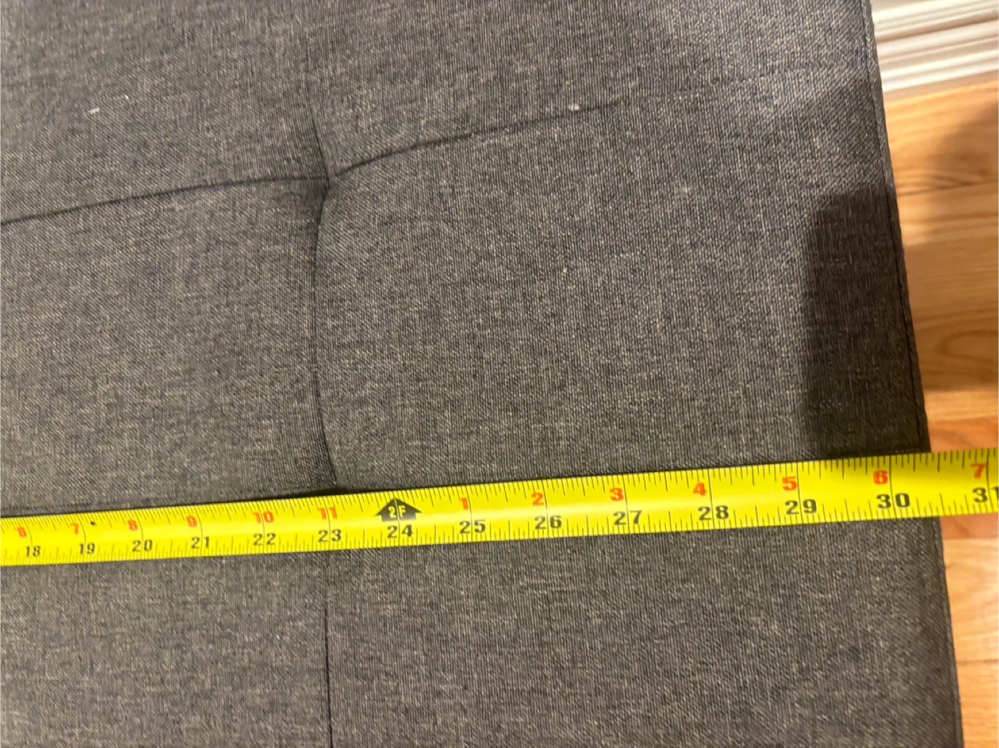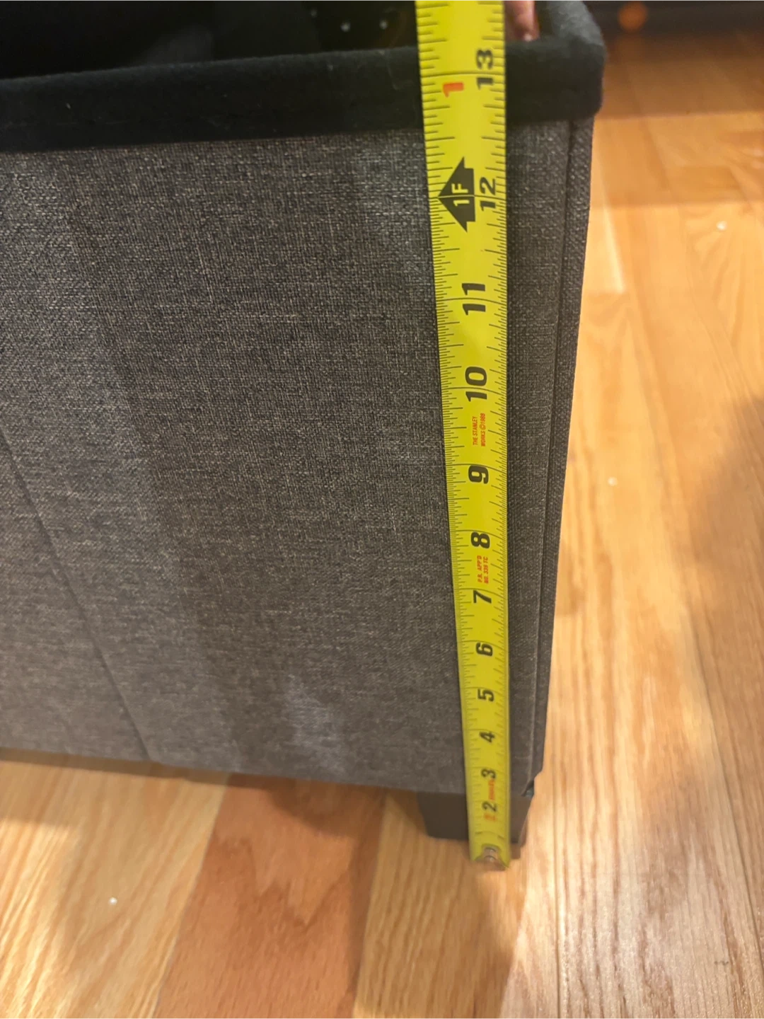 202Selling a SONGMICS storage ottoman bench! It's perfect for adding extra seating and storage to any room. It measures approximately 30 inches in length. The colour is a neutral grey, so it will fit in with any decor