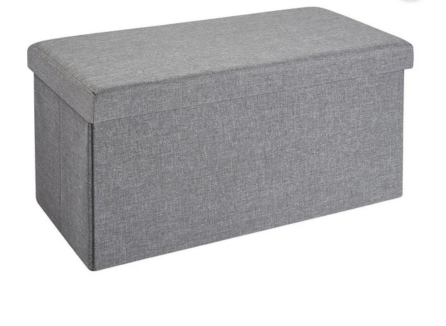 0This is a versatile grey storage ottoman that doubles as a comfortable seat and a practical storage solution; it is in great shape! It's perfect for decluttering your living space while adding a touch of elegance. * Colour: Grey * Shape: Rectangular * Features: Foldable design for easy storage when not in use * Material: Durable fabric