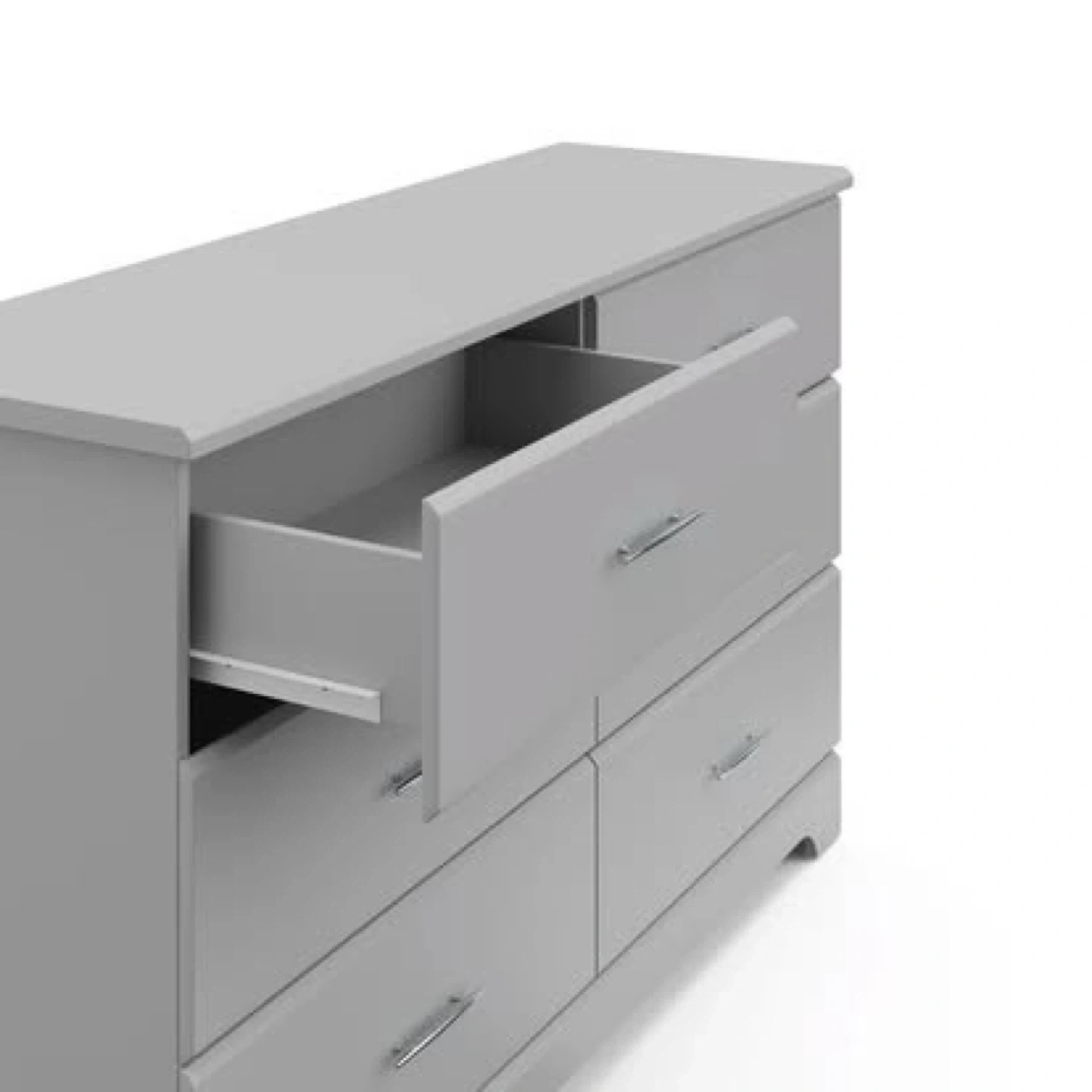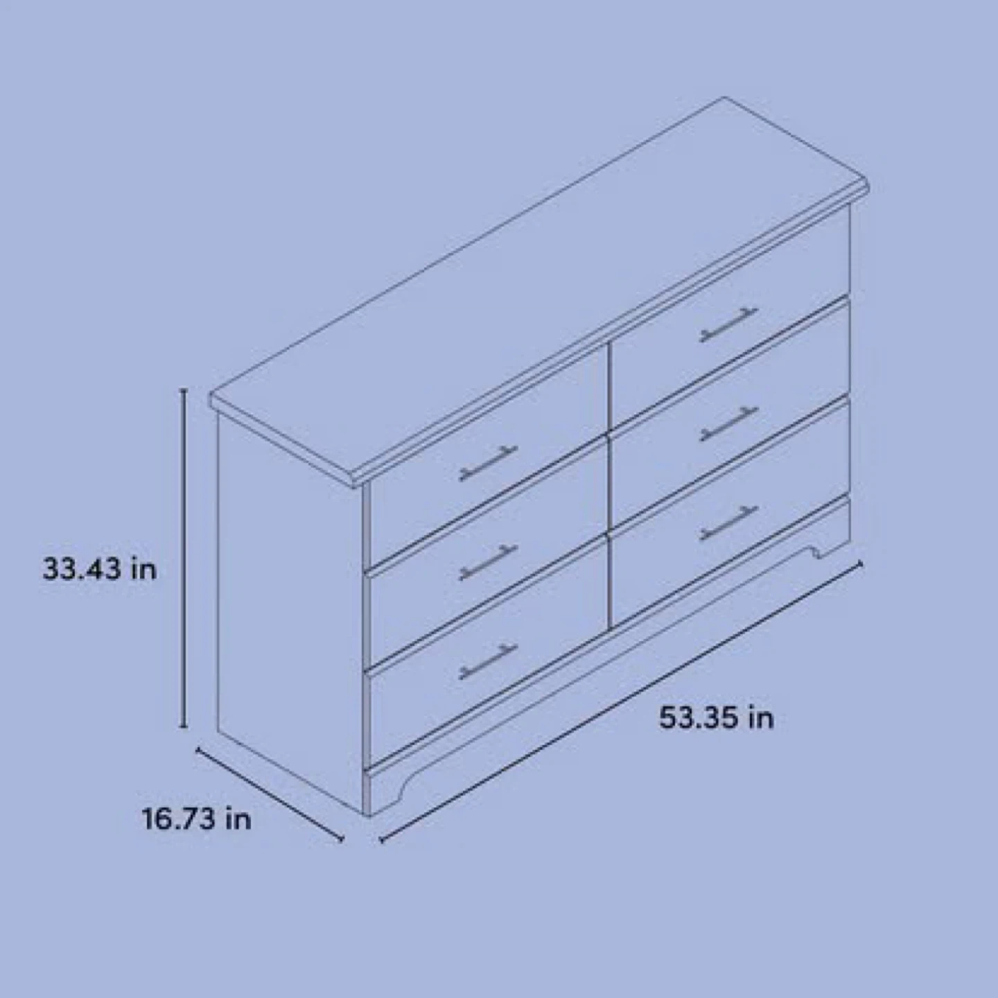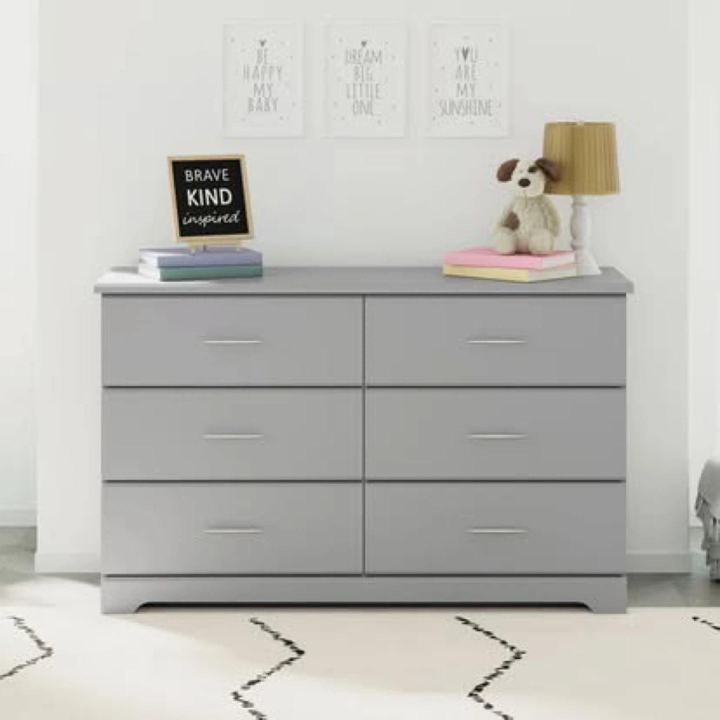 60Looking to sell a Storkcraft Brookside 6-drawer dresser. It's brand new in box and ready for a new home! The dresser is grey and has six drawers. Dimensions are approximately 53.35 inches wide, 16.73 inches deep, and 33.43 inches tall