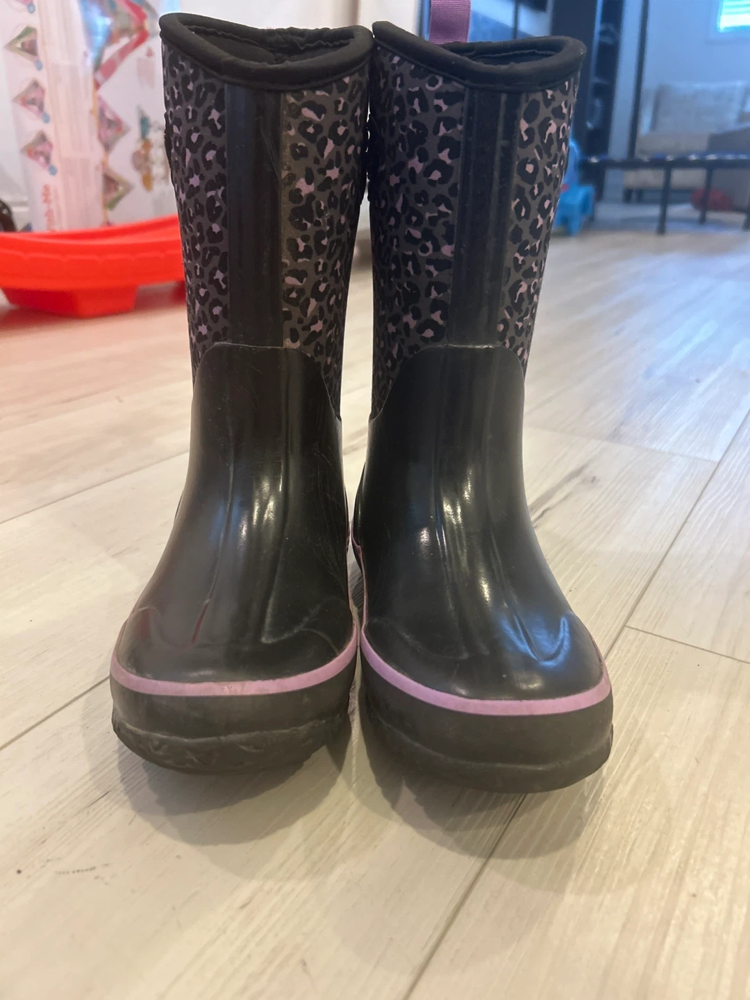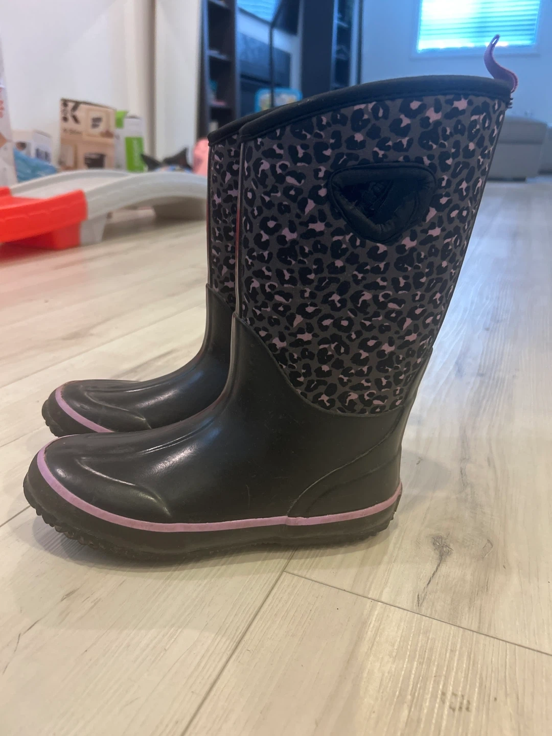Selling a pair of Bogs style rain/winter boots in a fun leopard spots pattern! They're in great condition and perfect for keeping little feet dry on rainy days. The size is US 2. Keep your little one’s feet warm and dry this winter. In excellent condition!