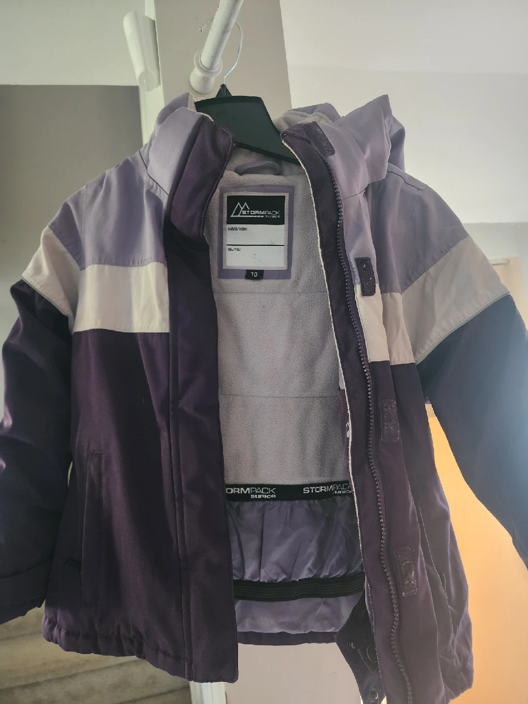 10Selling a Stormblock kids winter jacket in purple, white, and lavender! It's a size 10 and perfect for keeping your little one warm this winter season