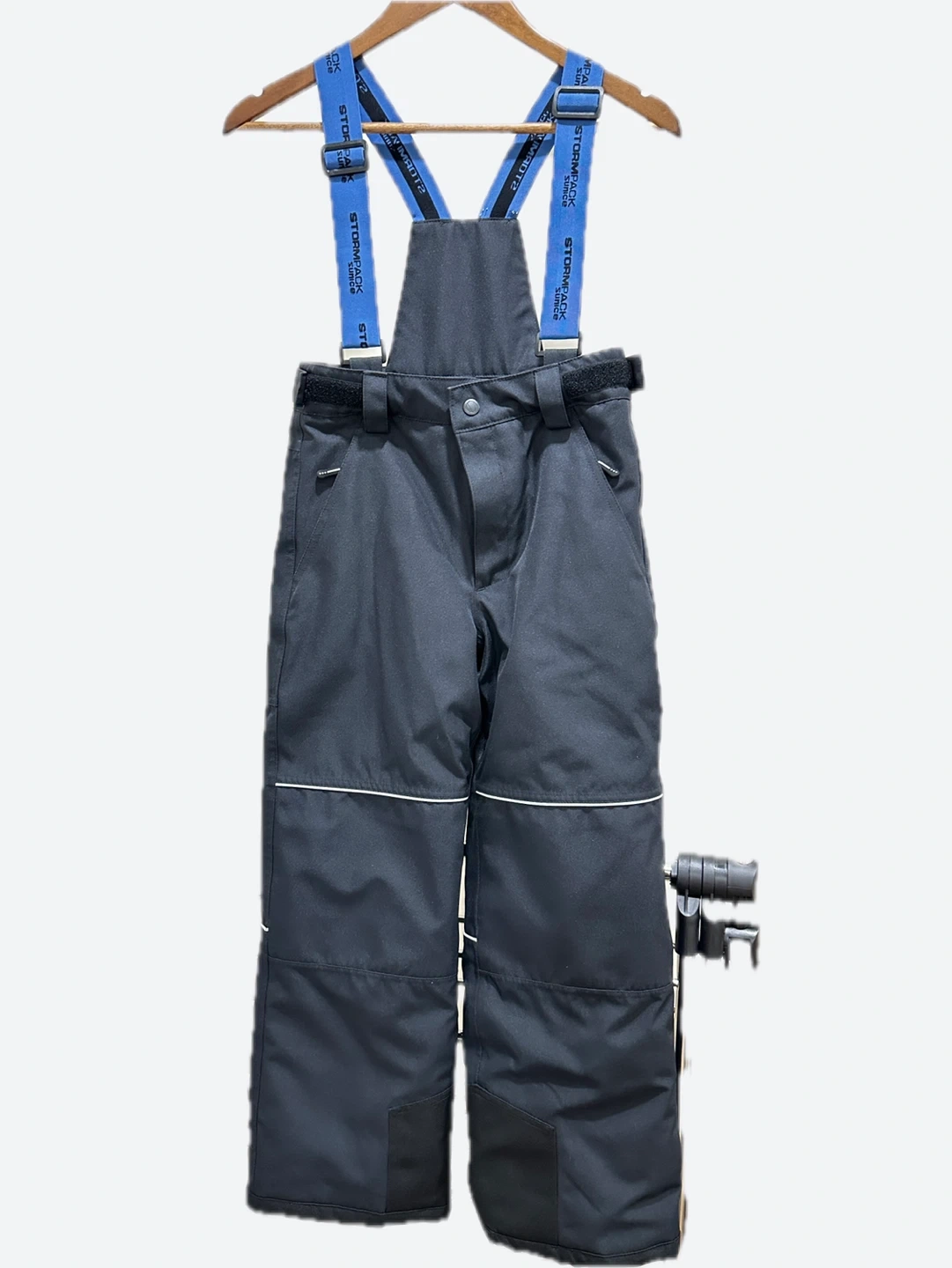 Stormpack snow pants- size 10 years in great condition! These pants feature adjustable blue suspenders and a dark grey colour. Perfect for keeping your little one warm and dry during winter activities!