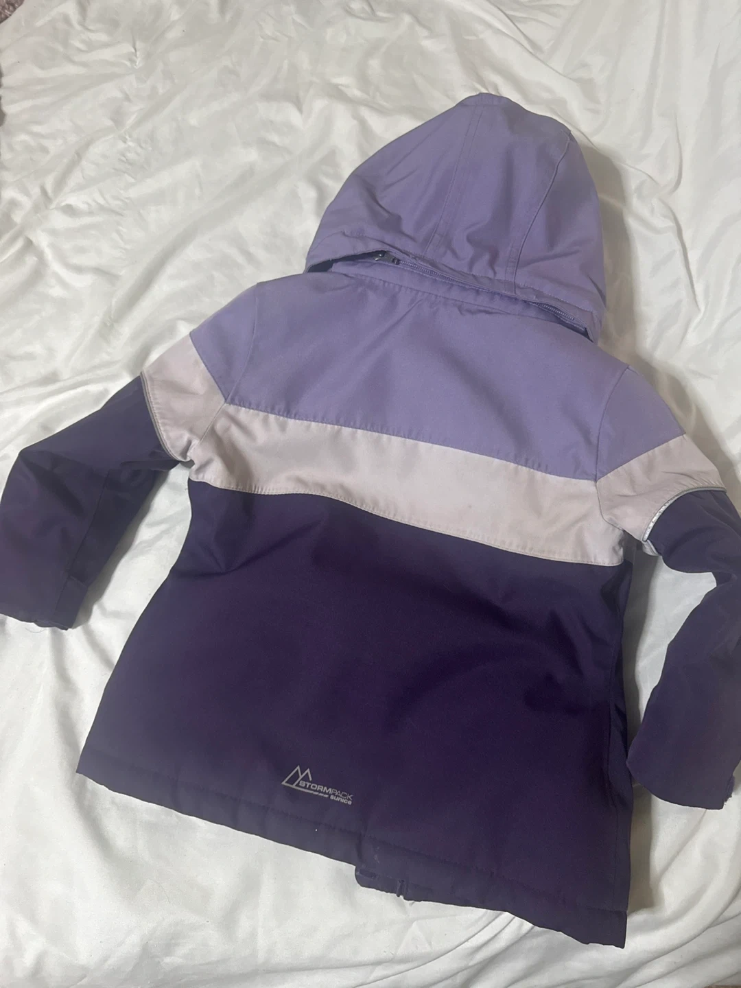 10Keep your little one warm this winter with this Stormtech kids winter jacket! The jacket features a stylish purple colour block design. It's perfect for outdoor adventures and snowy days Size 4