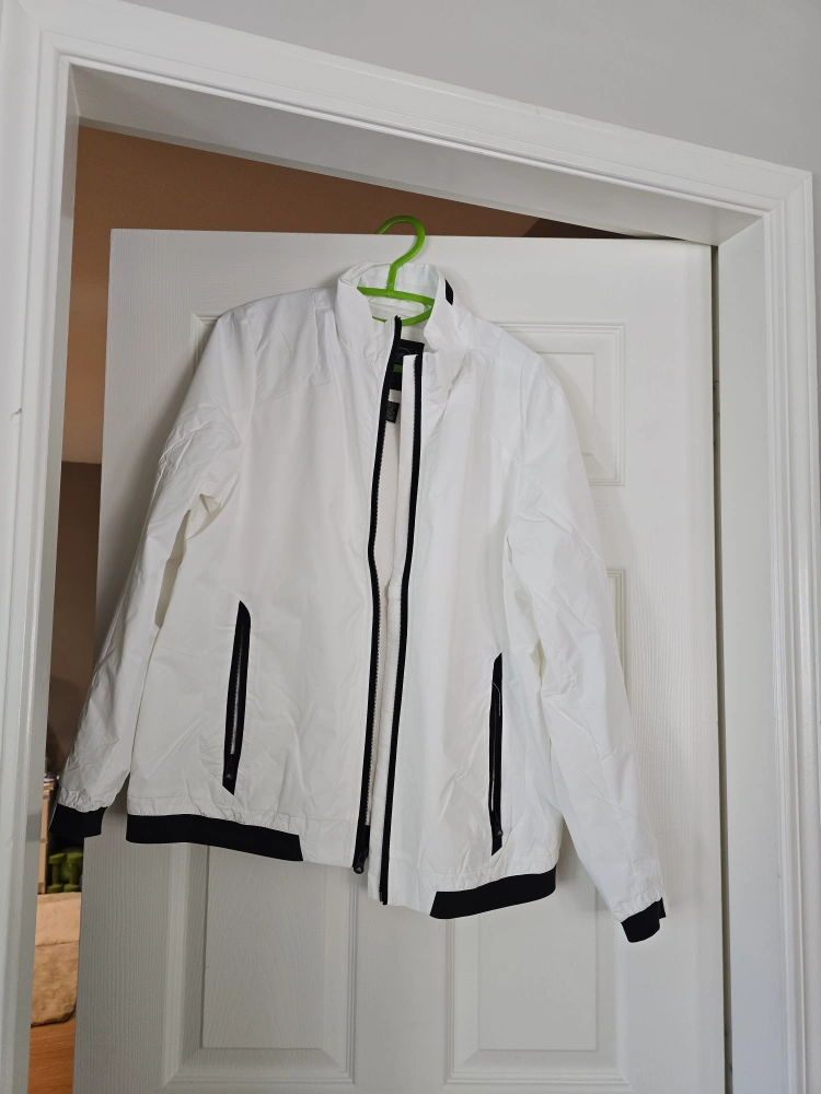 StormTech Performance women's white jacket, NWOT. Size large. Black accents. Zip front. Long sleeves. Pockets. Great for layering.