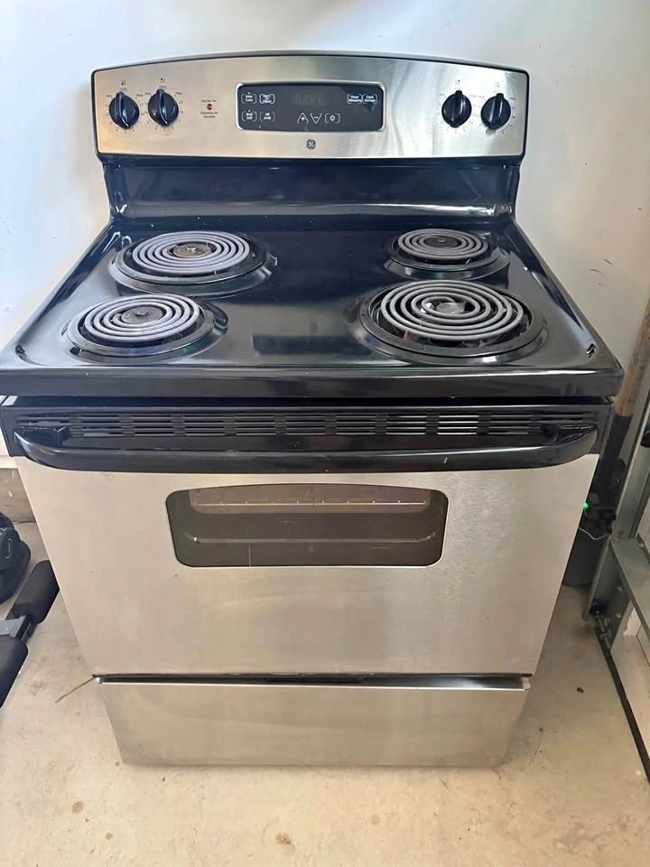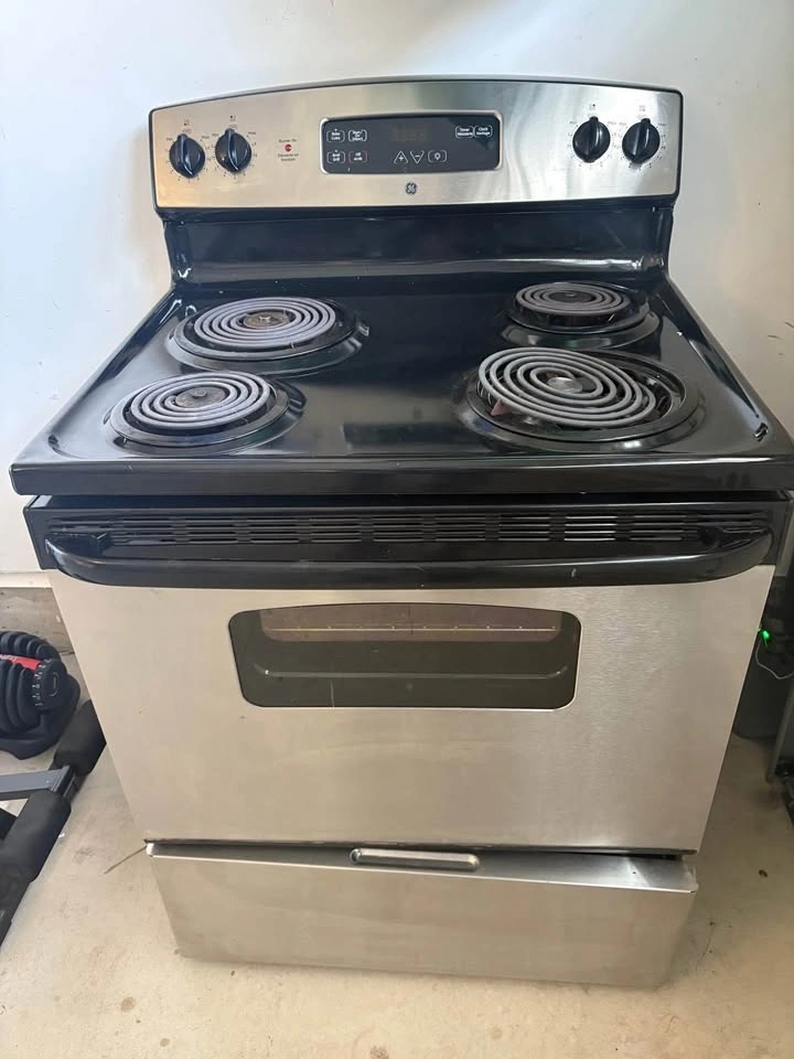 Oven is working, burners get sometime problem. Not sure the reason. As is condition.