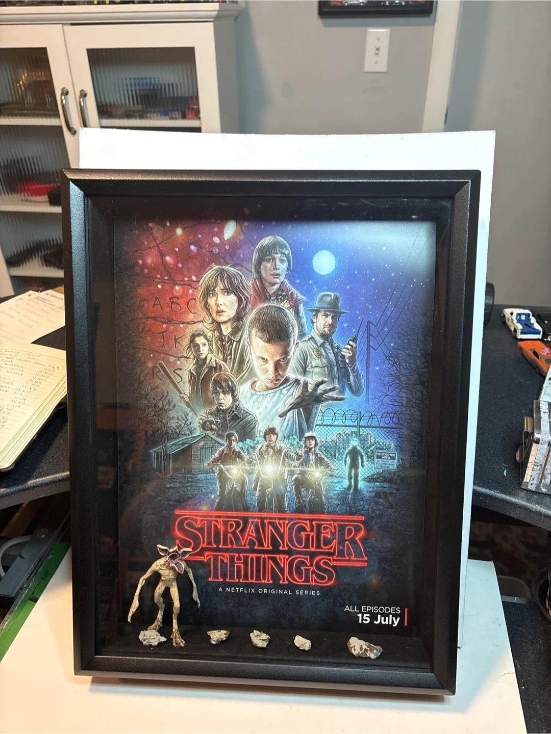 70Selling a framed Stranger Things poster. It features the main characters and the Demogorgon. Perfect for any fan of the show!