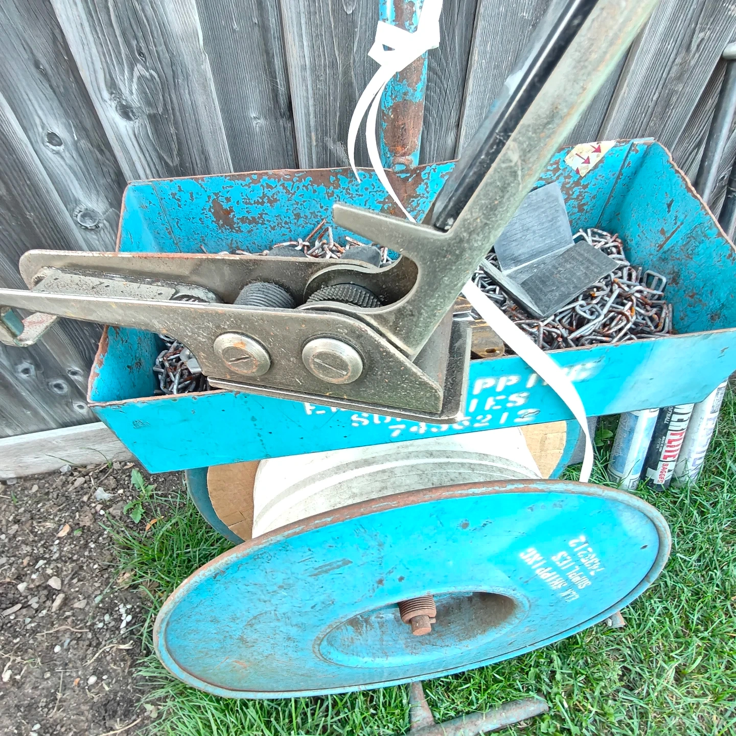 10Strapping Cart, plastic strapping, metal clips, ratchet. Shipping cartons tamper free. Milton, ON. Doug 416-433-4144