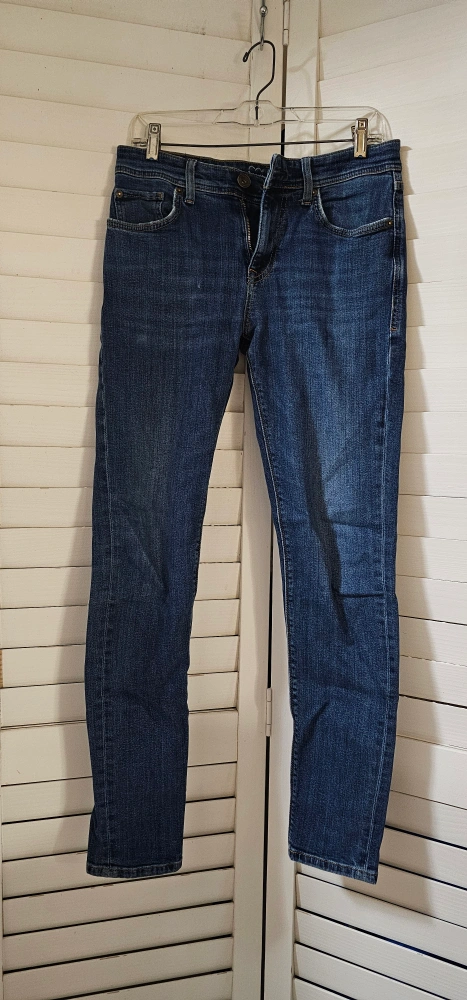 1000+Women's dark wash blue jeans. Size 6 regular. Good condition. Slight fading.