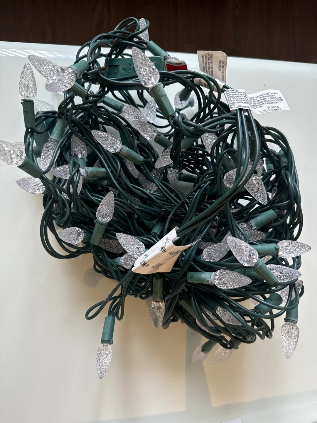 17Selling a set of string lights featuring clear faceted C6 bulbs! These lights have a green wire and are perfect for adding a touch of sparkle to your home or garden. They're in great shape and ready to brighten up your space