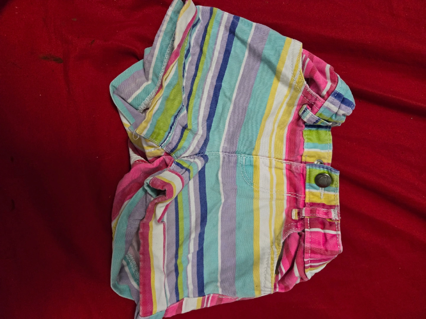 505Here's a cute button-up shirt with colourful stripes! It features short sleeves and a button detail on the sleeve. Perfect for a fun, casual look