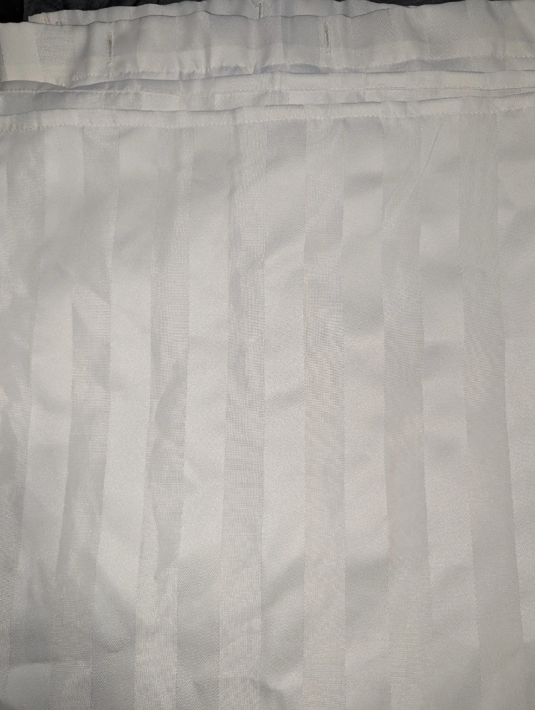 Standard polyester, cream-coloured shower curtain. Freshly washed and ready for a new home. Porch pick-up.