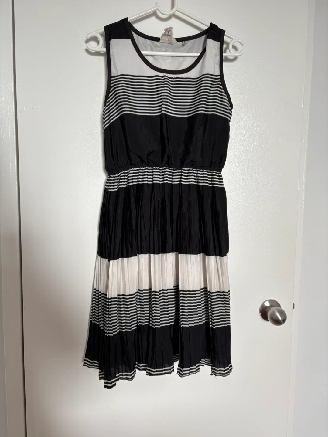 Selling a cute striped sleeveless dress in black and white. It's in great condition and ready for a new home!
