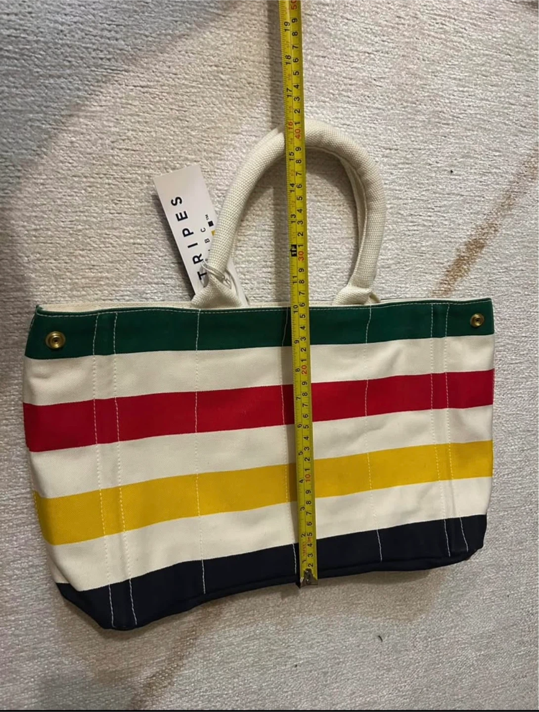 419Here's a cute tote bag from Stripes B.C.! It has a Hudson's Bay style stripe design. It's about 13 inches tall, 19 inches wide, and 6 inches deep