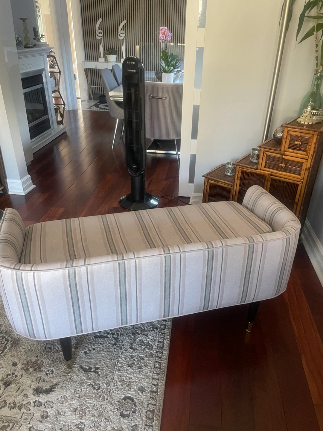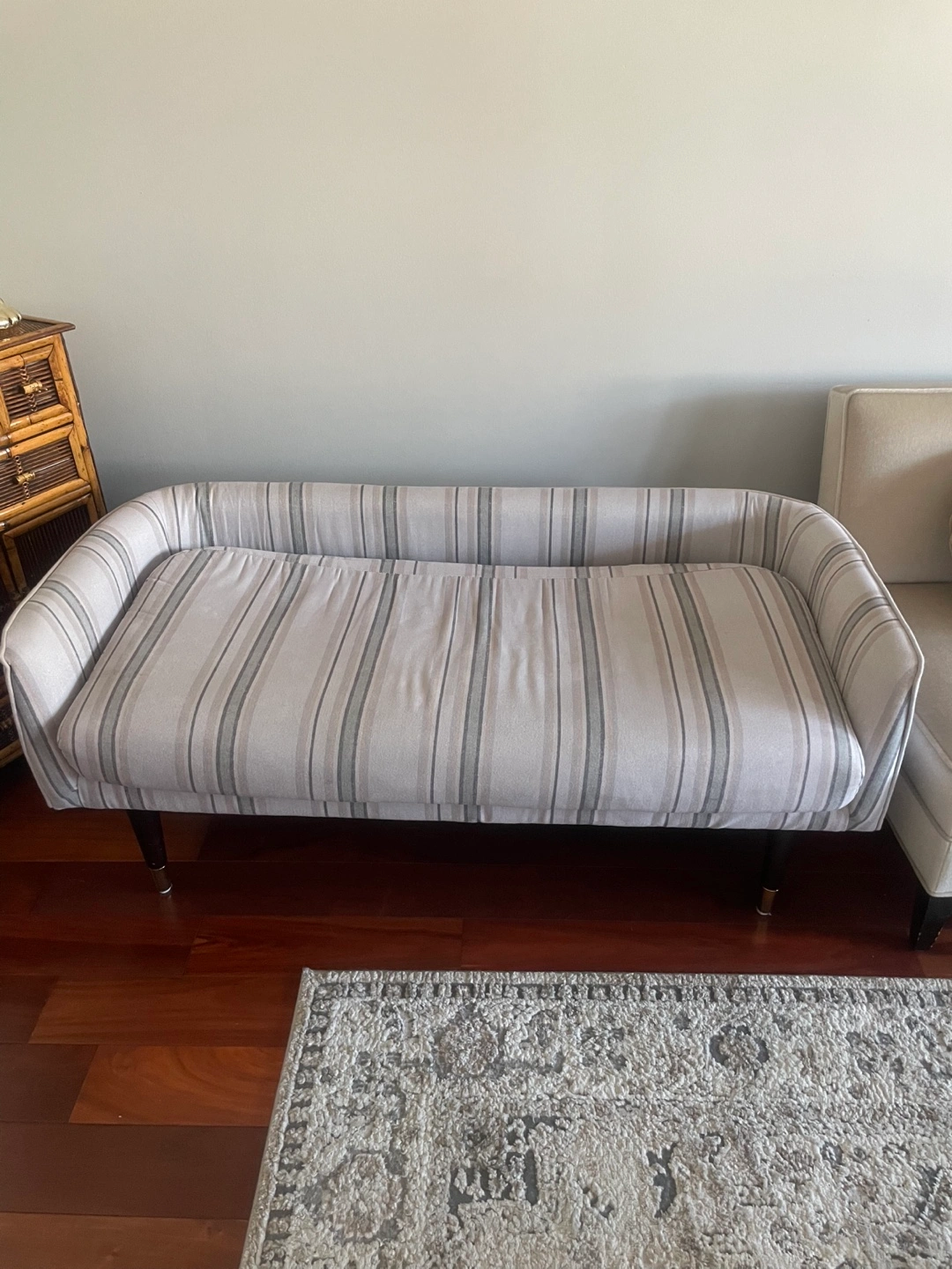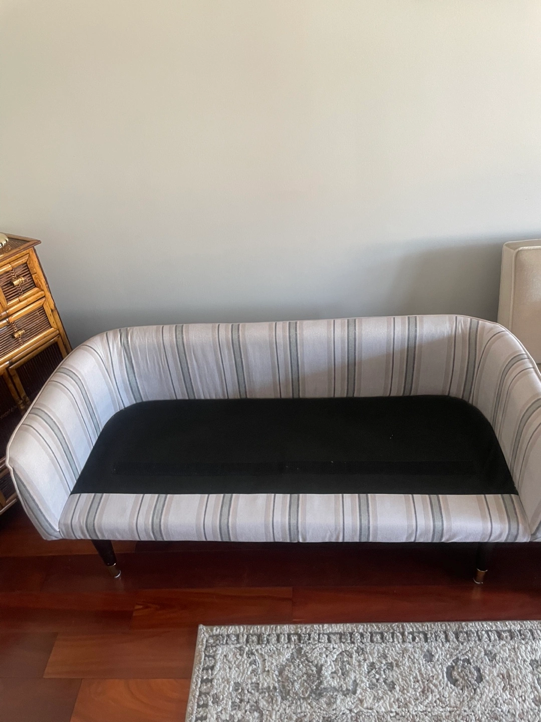 26I am selling this striped loveseat/futon because we dont really need it anymore. It’s been used for a little more than a year but is still in good condition. - Removeable cushion -we have a cat so maybe a little cat hair but we only recently got him so not too much -still in good condition with no scratches or stains or anything -price is negotiable
